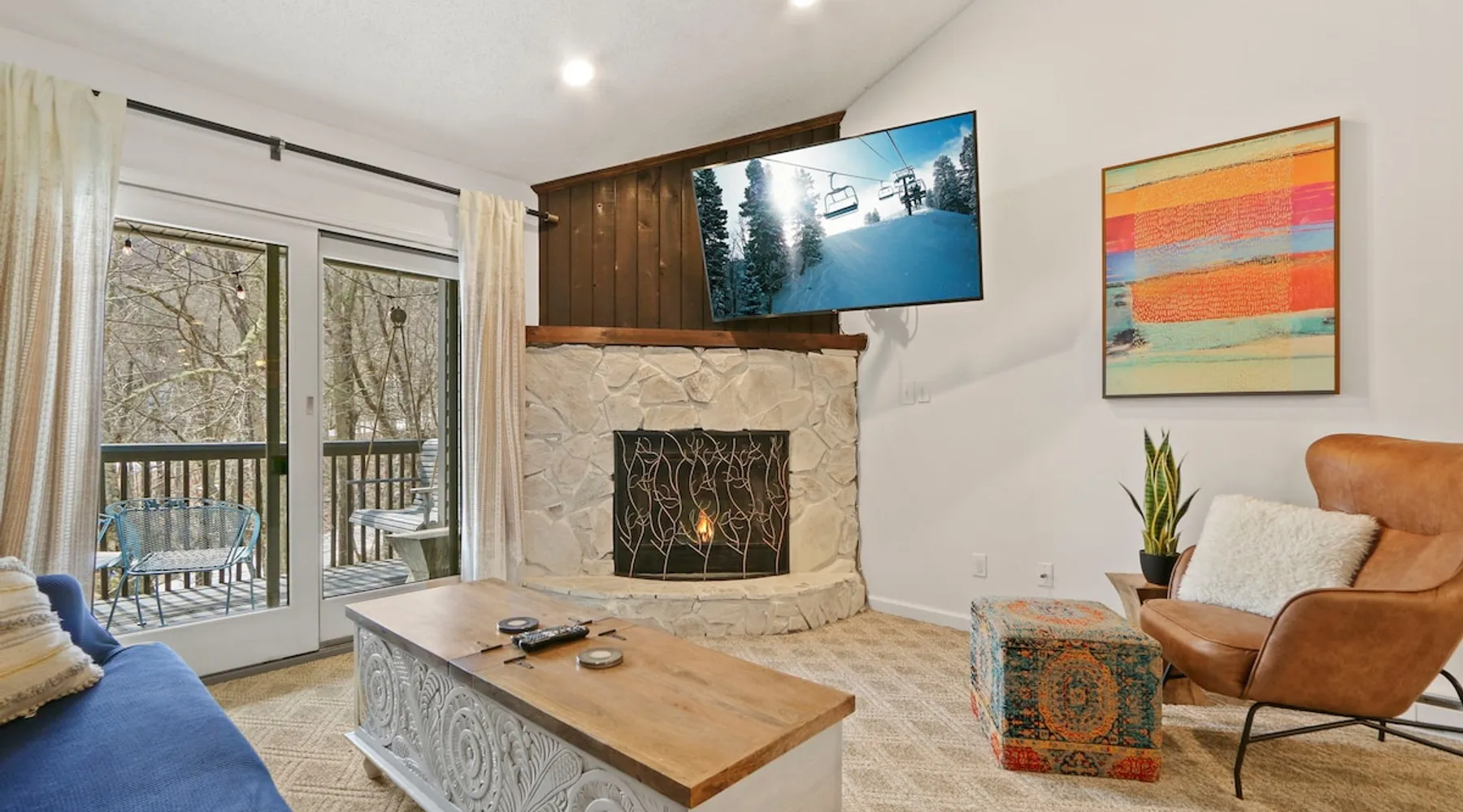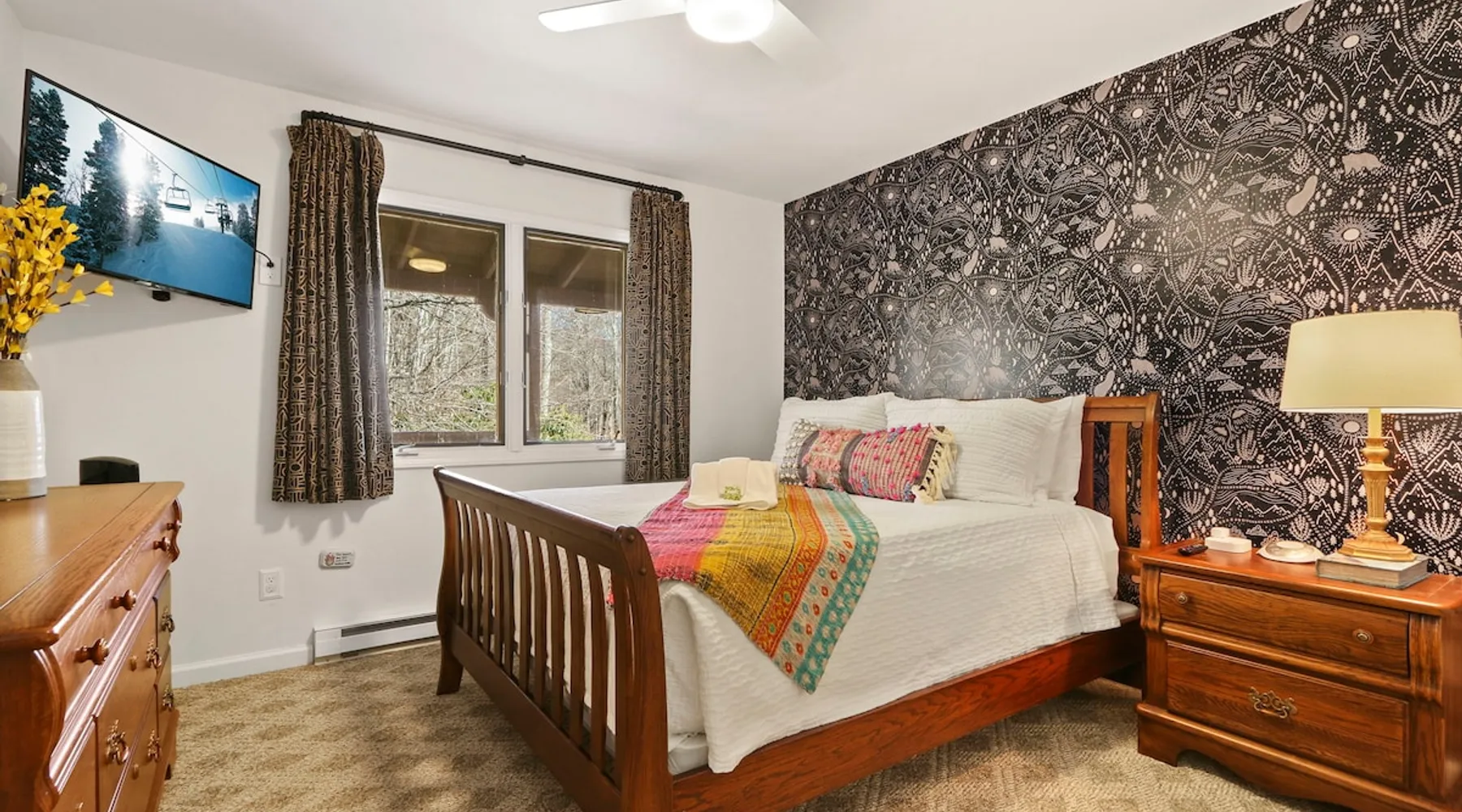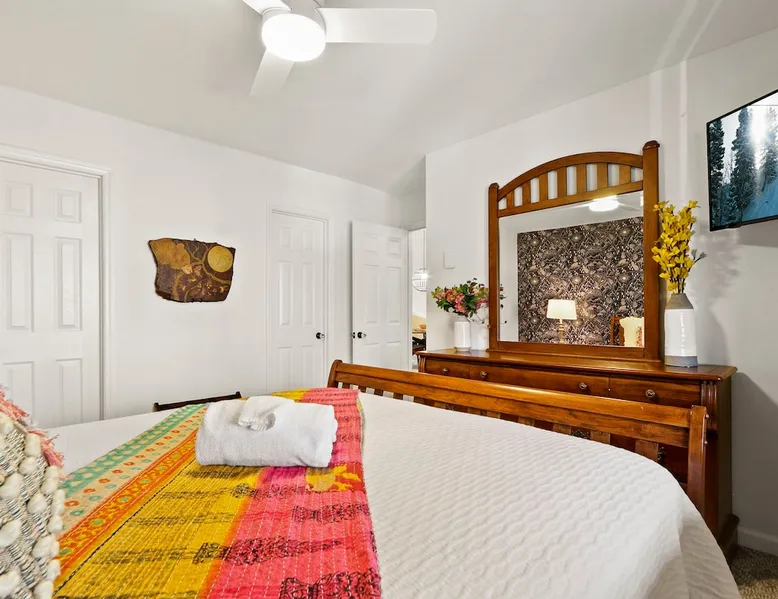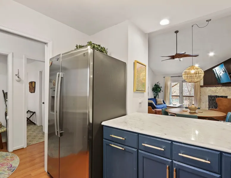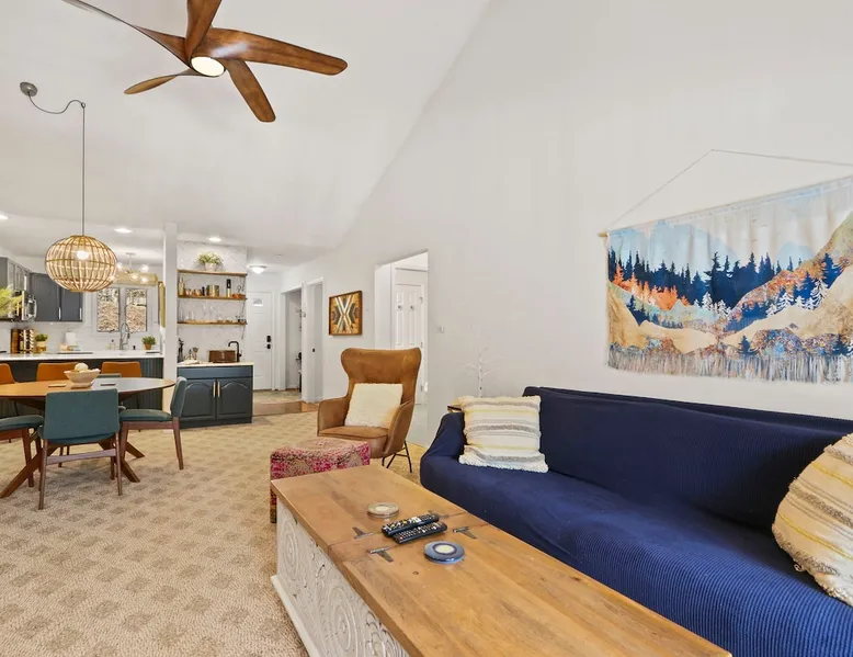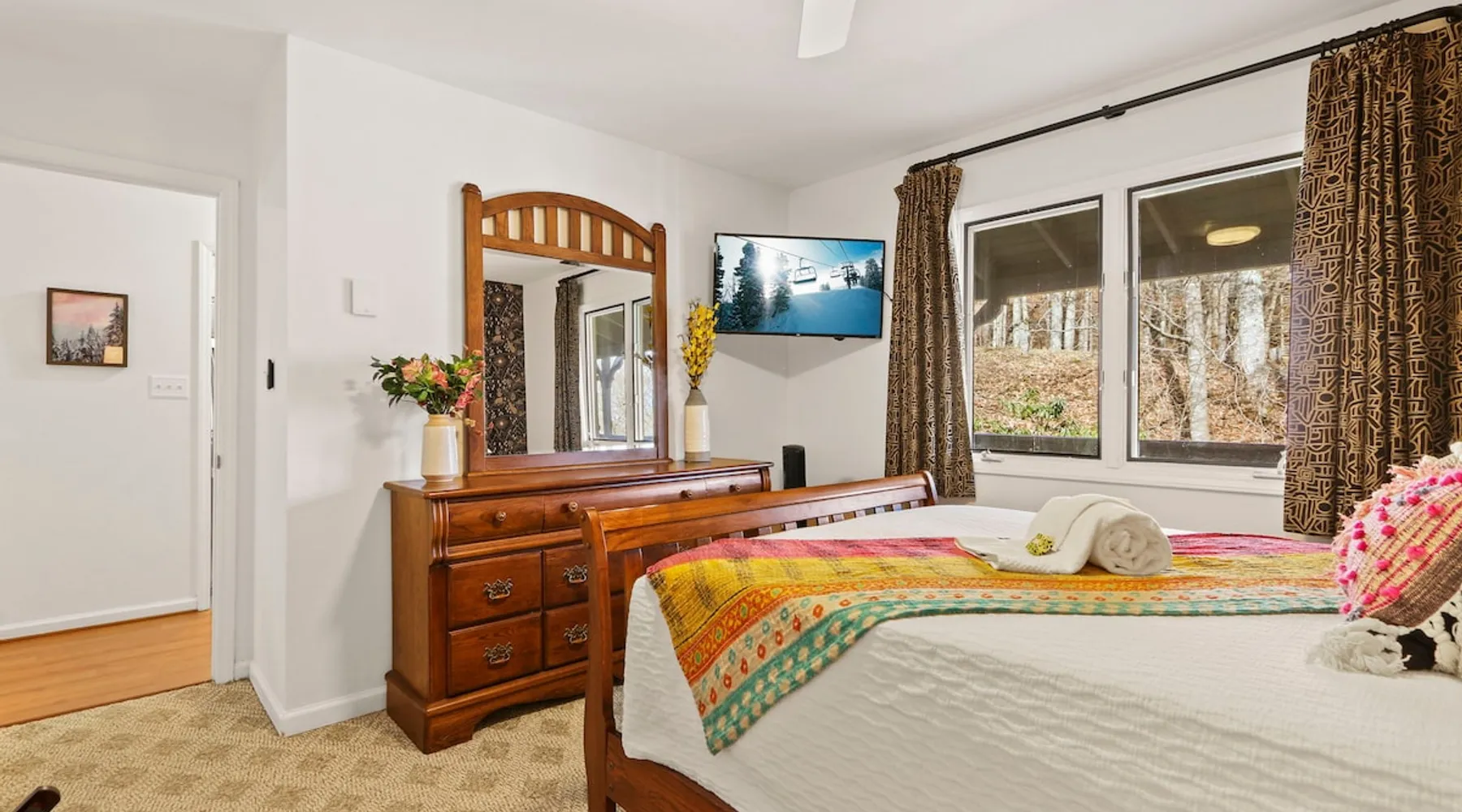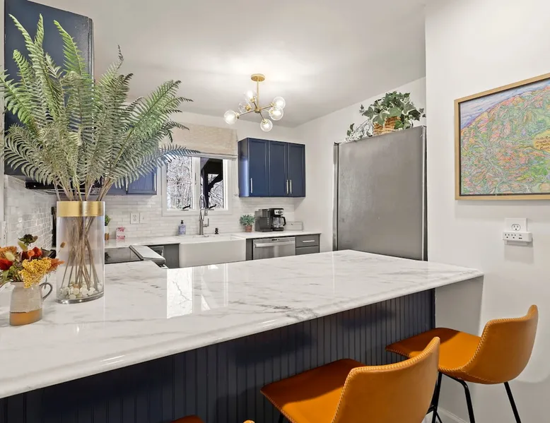 Welcome to High Country Haven, an upscale mountain retreat styled with unique modern boho and rustic glam decor. Located on a ski resort with slope views, it sits in a prime location in the middle of North Carolina High Country on Sugar Mountain. The space Enjoy the spacious top floor, vaulted ceiling unit to yourselves with contactless check in. Located in The Branches Community 🏔 Tons of amazing hiking trails nearby ⛷ Walking proximity to ski slopes + biking trails (you can watch friends and family go down the slopes from the back patio!) 💦 Soothing babbling brook that can be enjoyed nearly year round by opening the screened doors and windows 🛏 2 queen bedrooms 🛁 En-suite baths for both bedrooms 📺 Smart TVs in every room, including a 60” TV in the living room with cable and streaming services includes (Netflix, Disney+, HBO, Amazon Prime) 🍽 Enjoy preparing a meal in the gourmet kitchen & eating at the dining table for 4 with extra seating at kitchen bar Other things to note Free WiFi Full gourmet kitchen Gas fireplace 4WD/traction may be required during winter Private, stacked washer/dryer