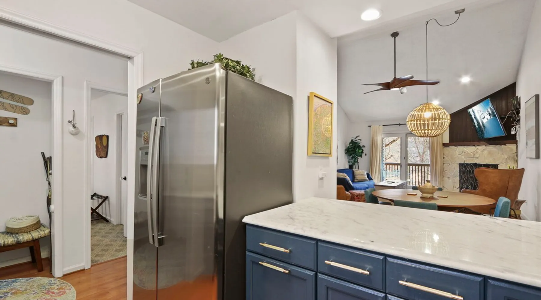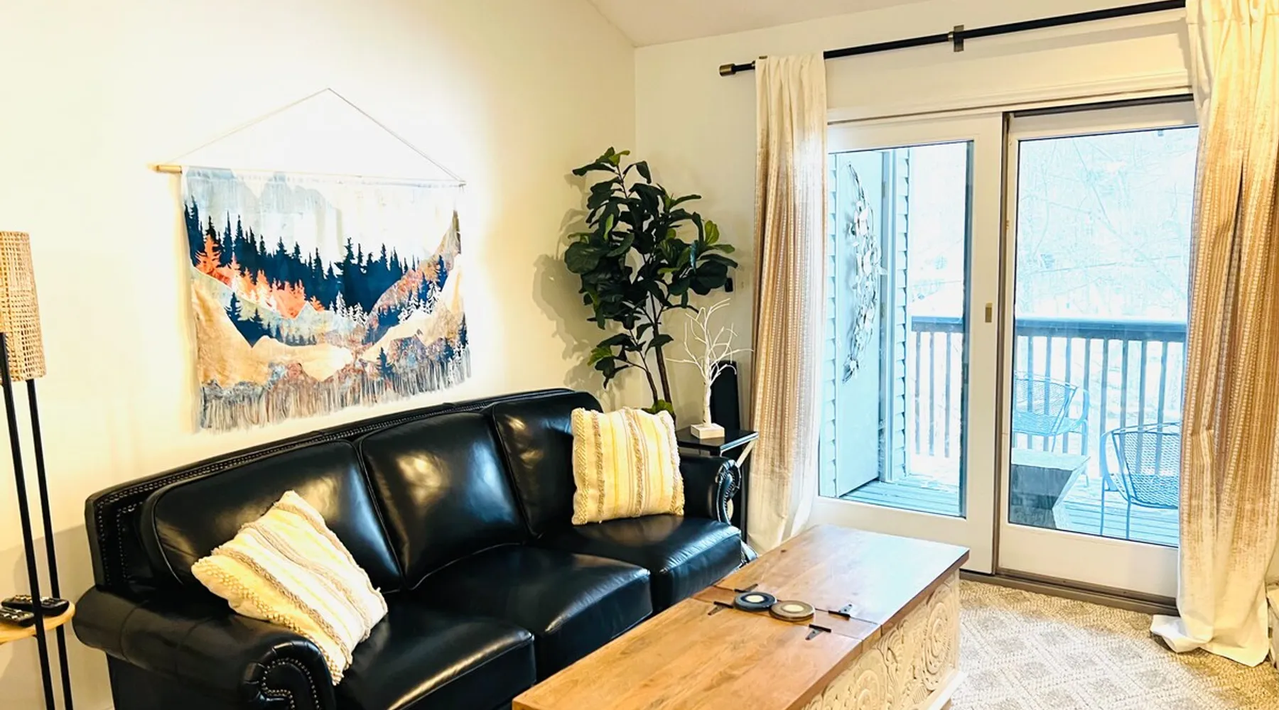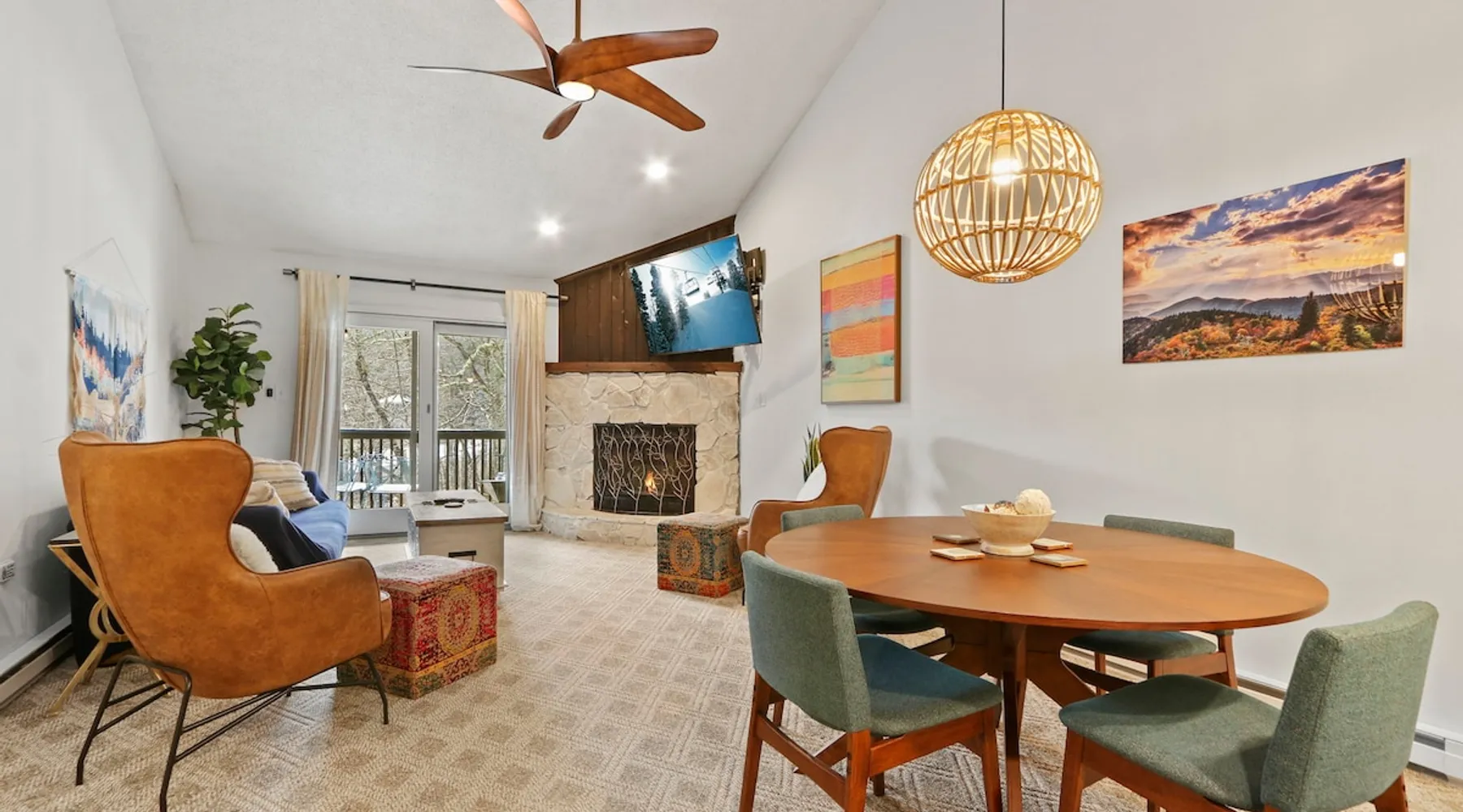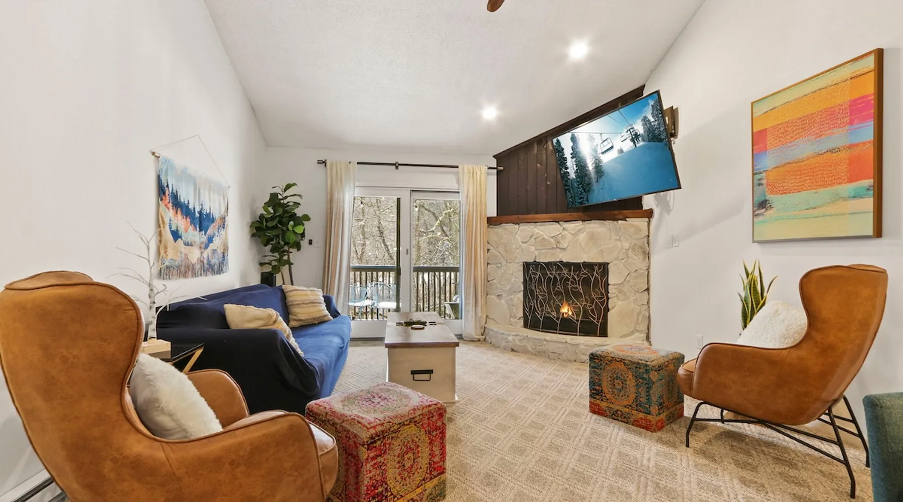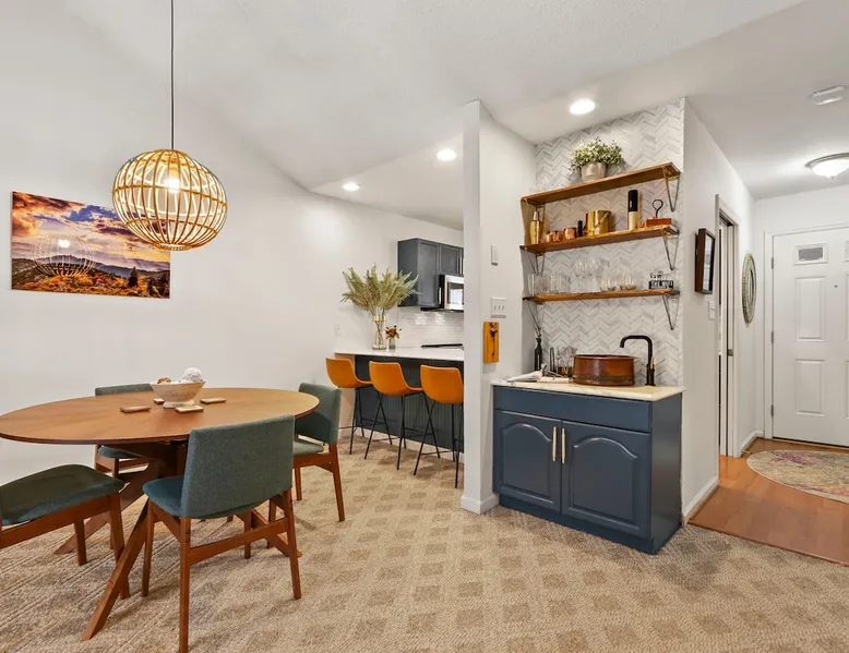 Welcome to High Country Haven, an upscale mountain retreat styled with unique modern boho and rustic glam decor. Located on a ski resort with slope views, it sits in a prime location in the middle of North Carolina High Country on Sugar Mountain. The space Enjoy the spacious top floor, vaulted ceiling unit to yourselves with contactless check in. Located in The Branches Community 🏔 Tons of amazing hiking trails nearby ⛷ Walking proximity to ski slopes + biking trails (you can watch friends and family go down the slopes from the back patio!) 💦 Soothing babbling brook that can be enjoyed nearly year round by opening the screened doors and windows 🛏 2 queen bedrooms 🛁 En-suite baths for both bedrooms 📺 Smart TVs in every room, including a 60” TV in the living room with cable and streaming services includes (Netflix, Disney+, HBO, Amazon Prime) 🍽 Enjoy preparing a meal in the gourmet kitchen & eating at the dining table for 4 with extra seating at kitchen bar Other things to note Free WiFi Full gourmet kitchen Gas fireplace 4WD/traction may be required during winter Private, stacked washer/dryer