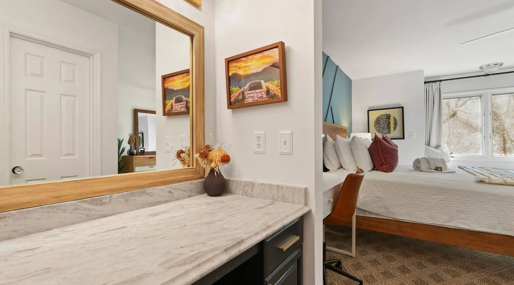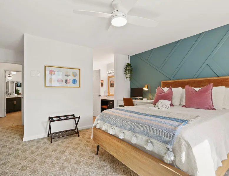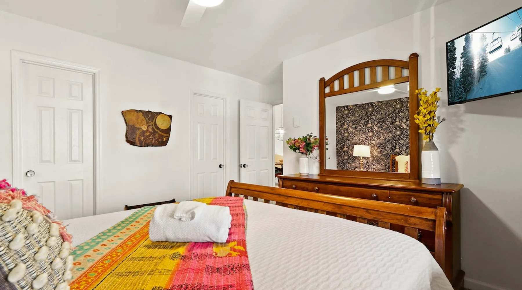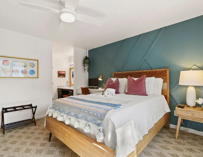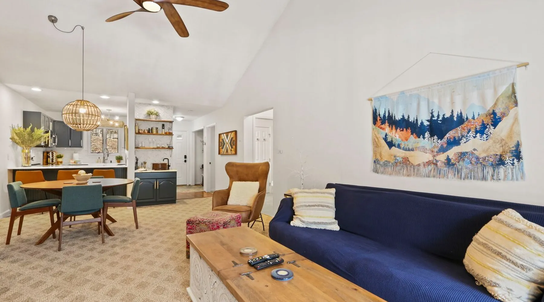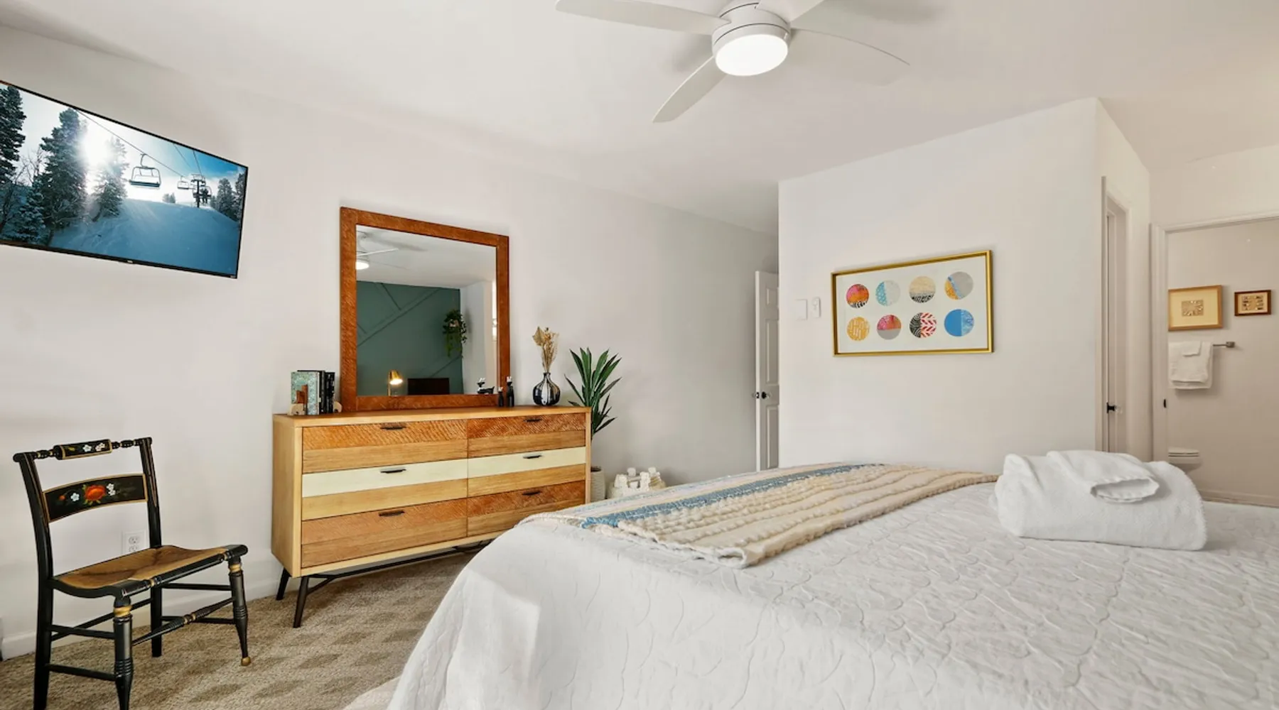 Welcome to High Country Haven, an upscale mountain retreat styled with unique modern boho and rustic glam decor. Located on a ski resort with slope views, it sits in a prime location in the middle of North Carolina High Country on Sugar Mountain. The space Enjoy the spacious top floor, vaulted ceiling unit to yourselves with contactless check in. Located in The Branches Community 🏔 Tons of amazing hiking trails nearby ⛷ Walking proximity to ski slopes + biking trails (you can watch friends and family go down the slopes from the back patio!) 💦 Soothing babbling brook that can be enjoyed nearly year round by opening the screened doors and windows 🛏 2 queen bedrooms 🛁 En-suite baths for both bedrooms 📺 Smart TVs in every room, including a 60” TV in the living room with cable and streaming services includes (Netflix, Disney+, HBO, Amazon Prime) 🍽 Enjoy preparing a meal in the gourmet kitchen & eating at the dining table for 4 with extra seating at kitchen bar Other things to note Free WiFi Full gourmet kitchen Gas fireplace 4WD/traction may be required during winter Private, stacked washer/dryer