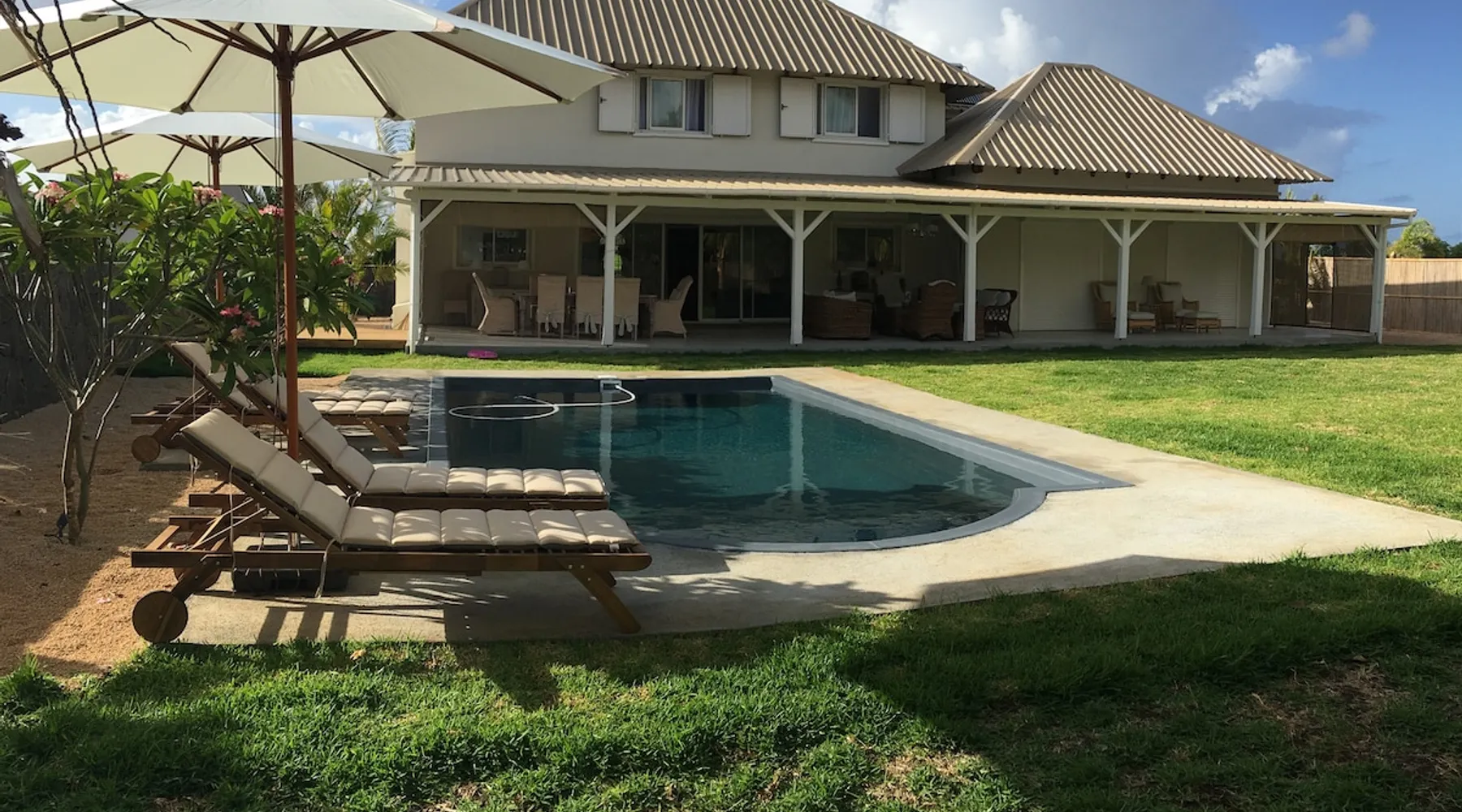 My place is close to the White Sandy Beach and Turquoise waters of Pointe d'esny. It is also close to the Blue Bay Marine park, to natural parks, and art and culture. You’ll love my place because of the space, (340sqm) , the garden, the large Terrasse, the quietness and the swimming pool. My place is good for couples, business travelers, and families (with kids). The space It is located in a high residential private estate, with security 24hr. It has been designed by a well recognized interior designer. It has a large terrace where you will spend most of your time