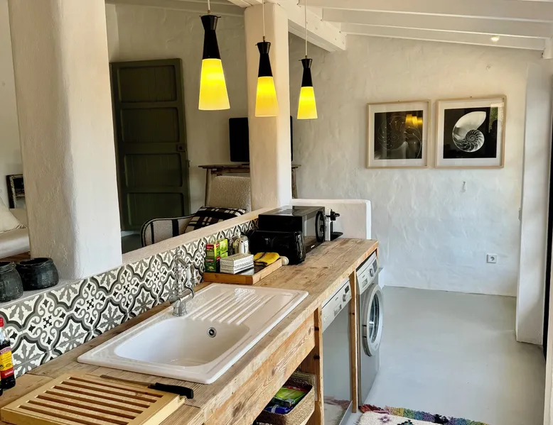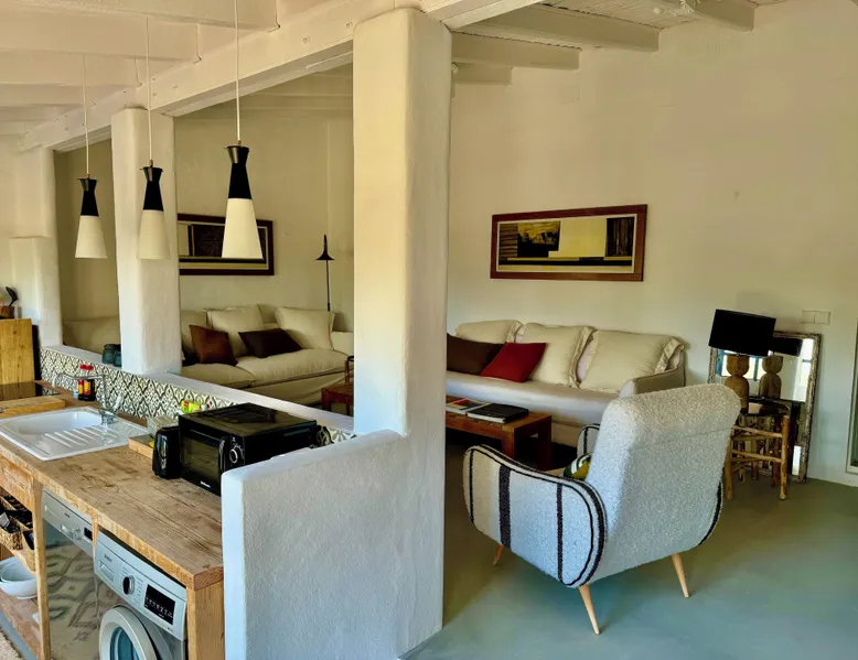 Ideally located in the quiet and residential area of Porto Saler, and 7 minutes walk from the center of Sant Francesc, this house has been completely renovated in 2019 with a lot of taste and charm. Perfectly equipped (reversible air conditioning in bedrooms, appliances, wifi) and very comfortable, 2 bedrooms, 2 bathrooms, living room, kitchen opening onto a terrace with sea views. This house is semi-detached, but without direct neighbors, each has its privacy.