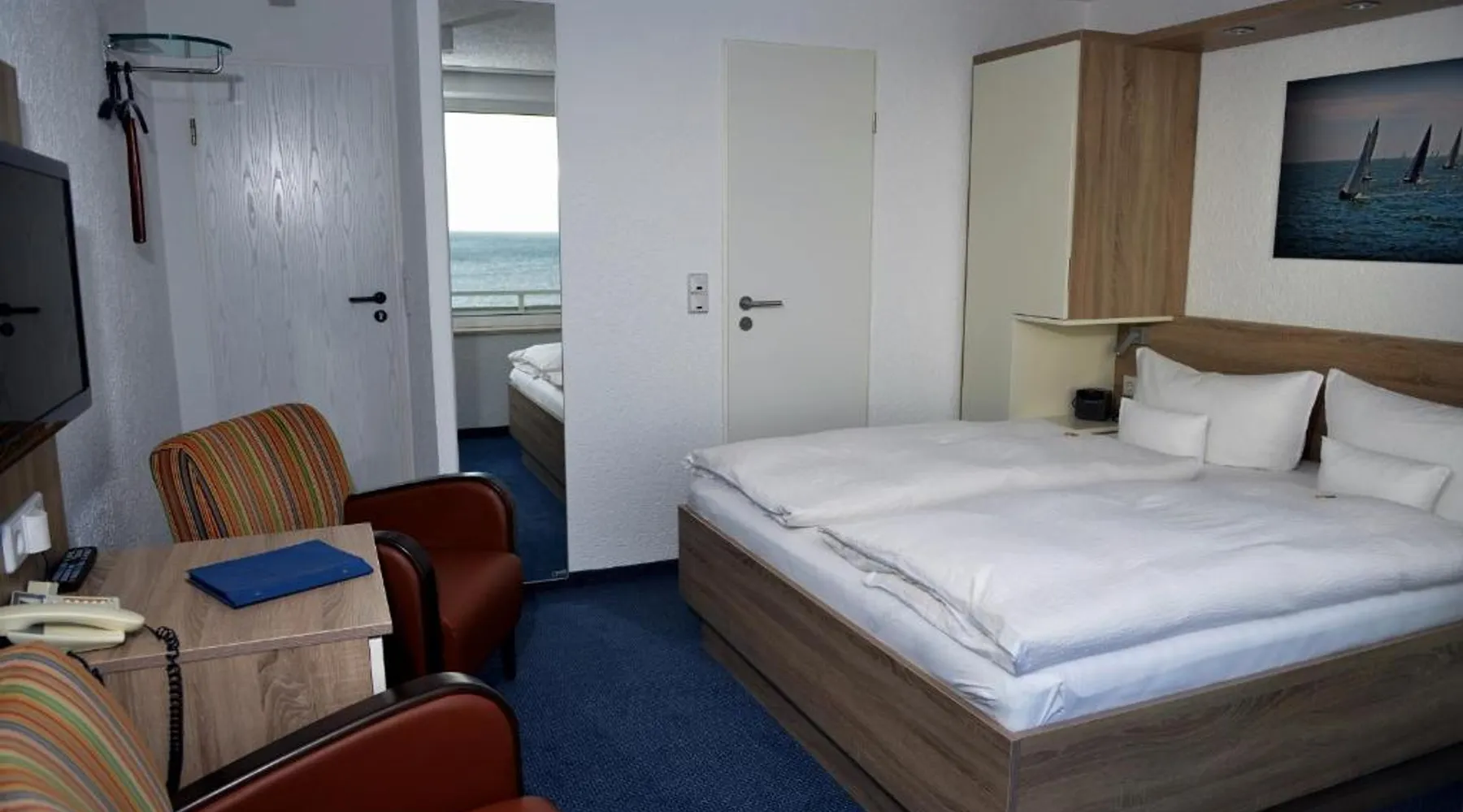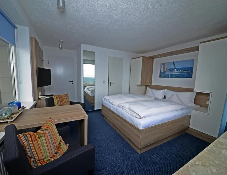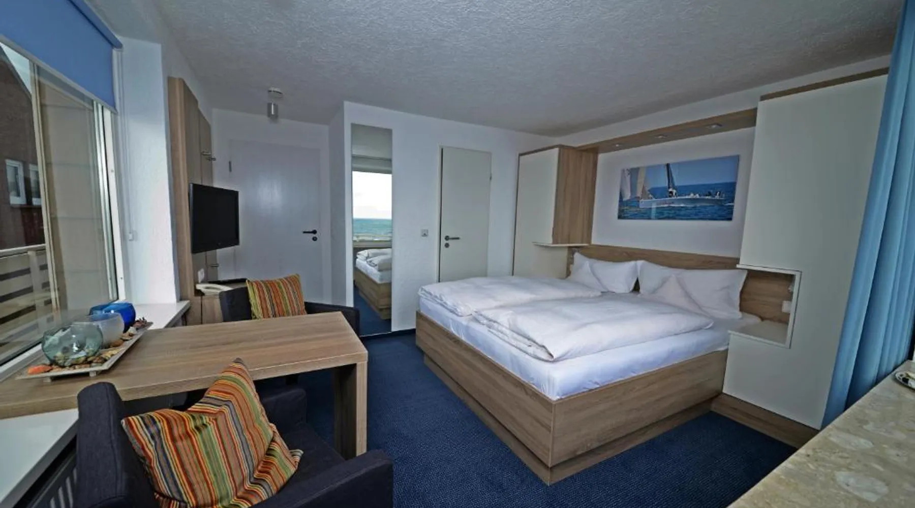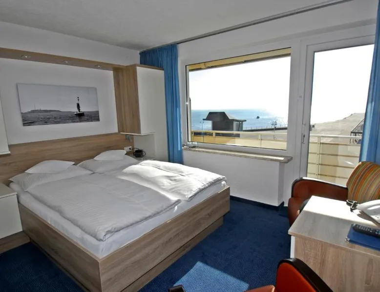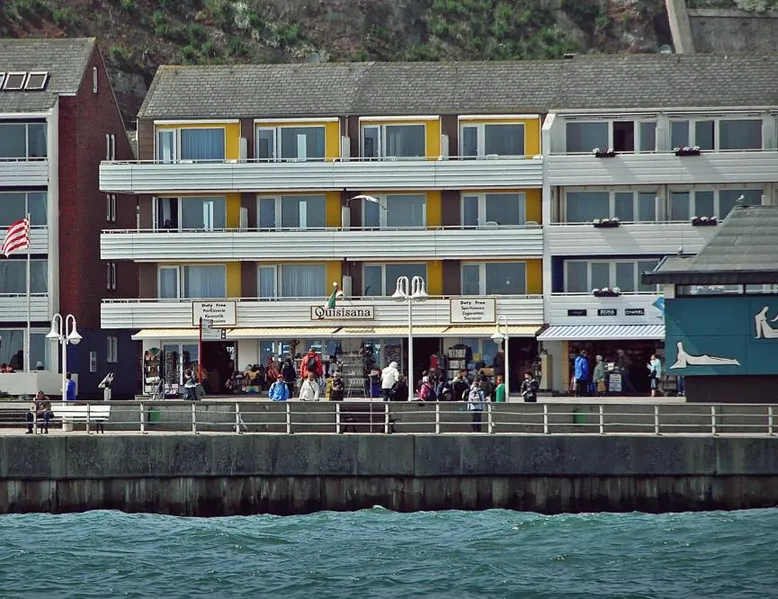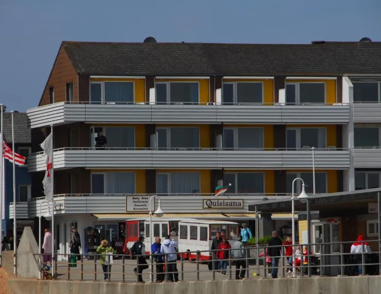 This family-run guest house on the Island of Helgoland overlooks the North Sea and is just a minute’s walk to the sandy beach. Guests enjoy a fresh breakfast buffet every morning. All of the Haus Quisisana’s comfortably furnished rooms feature a TV and seating area. Rooms facing the sea include a balcony with table, chairs and sun awning. The apartments in the separate Haus Quisi also come with their own fully equipped kitchenette, complete with kitchenware, refrigerator and tea/coffee maker. Quisisana & Quisi are an ideal starting point for activities such as sailing, bathing and relaxing walks along the beach. Helgoland Ferry Port is less than one km away, offering connections to Wilhelmshaven, Cuxhaven and Büsum. Features separate living area, 2 TVs and a fully equipped kitchen. This apartment is located directly opposite from the main hotel building.