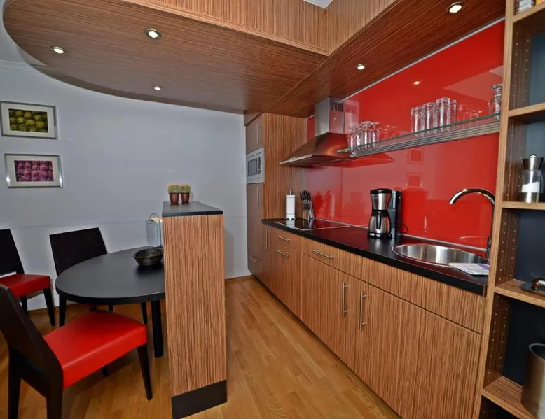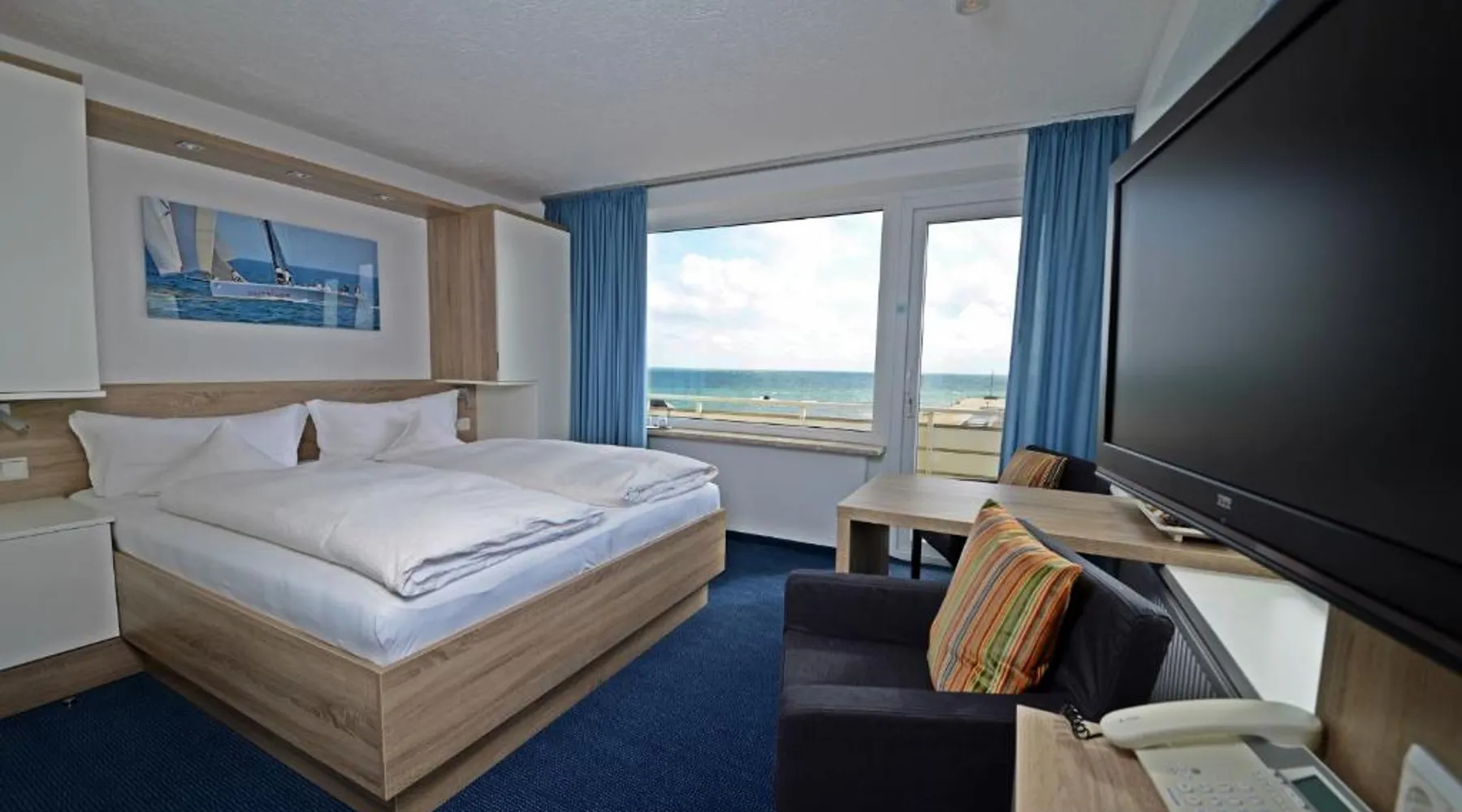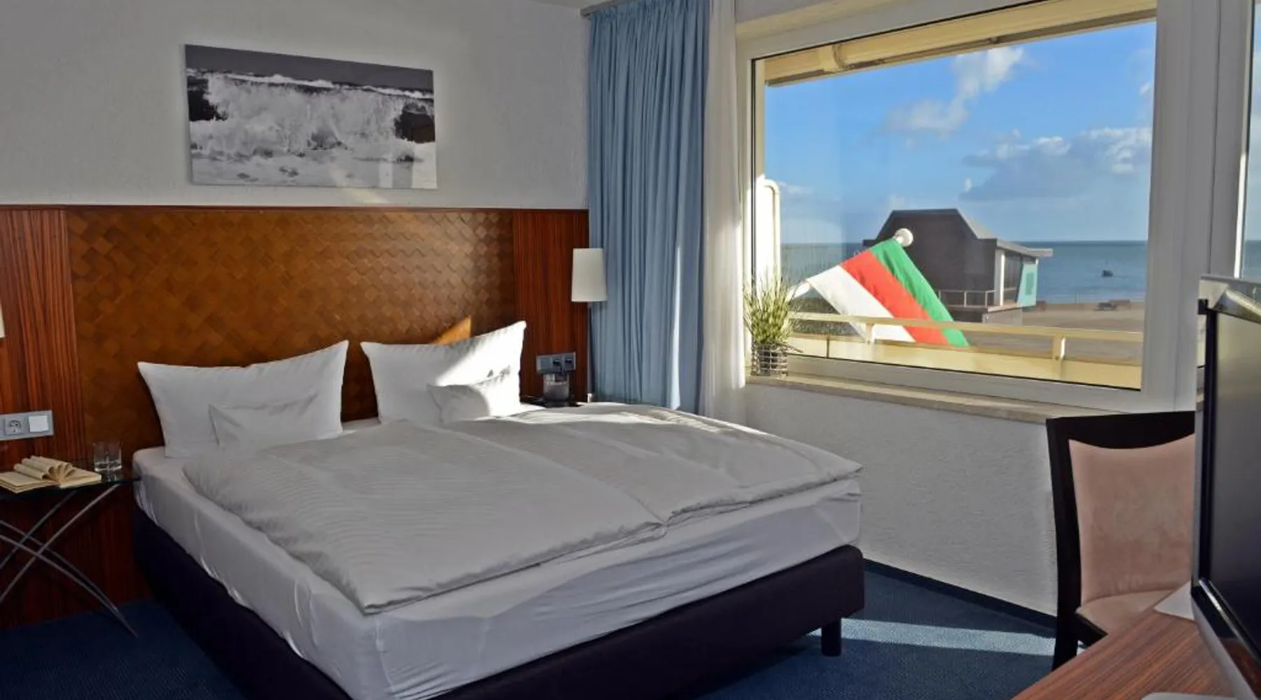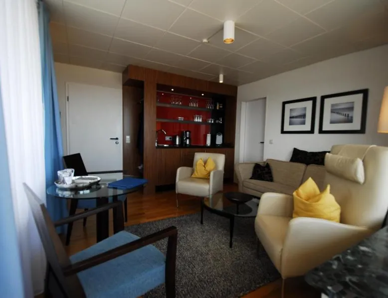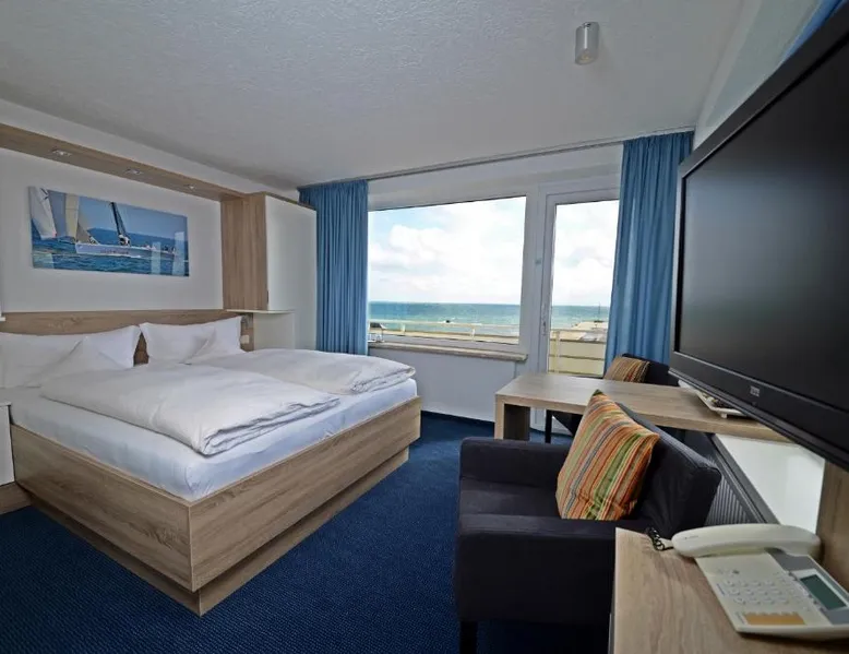 This family-run guest house on the Island of Helgoland overlooks the North Sea and is just a minute’s walk to the sandy beach. Guests enjoy a fresh breakfast buffet every morning. All of the Haus Quisisana’s comfortably furnished rooms feature a TV and seating area. Rooms facing the sea include a balcony with table, chairs and sun awning. The apartments in the separate Haus Quisi also come with their own fully equipped kitchenette, complete with kitchenware, refrigerator and tea/coffee maker. Quisisana & Quisi are an ideal starting point for activities such as sailing, bathing and relaxing walks along the beach. Helgoland Ferry Port is less than one km away, offering connections to Wilhelmshaven, Cuxhaven and Büsum. Features separate living area, 2 TVs and a fully equipped kitchen. This apartment is located directly opposite from the main hotel building.