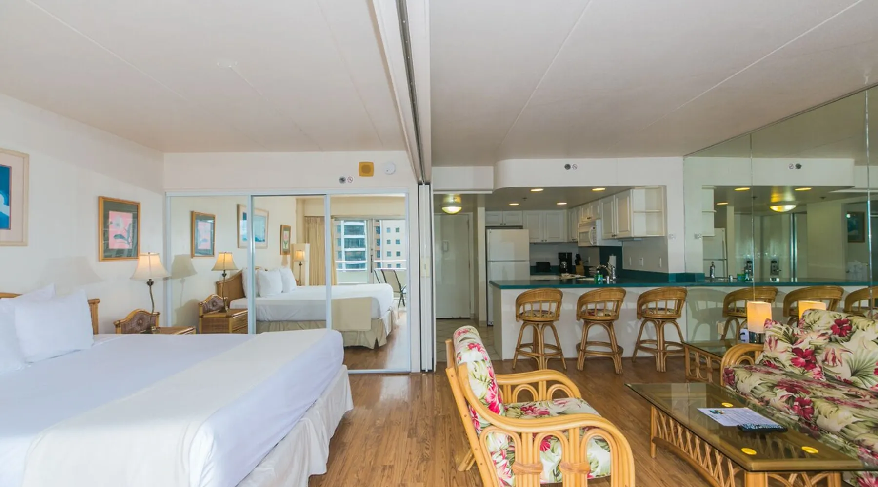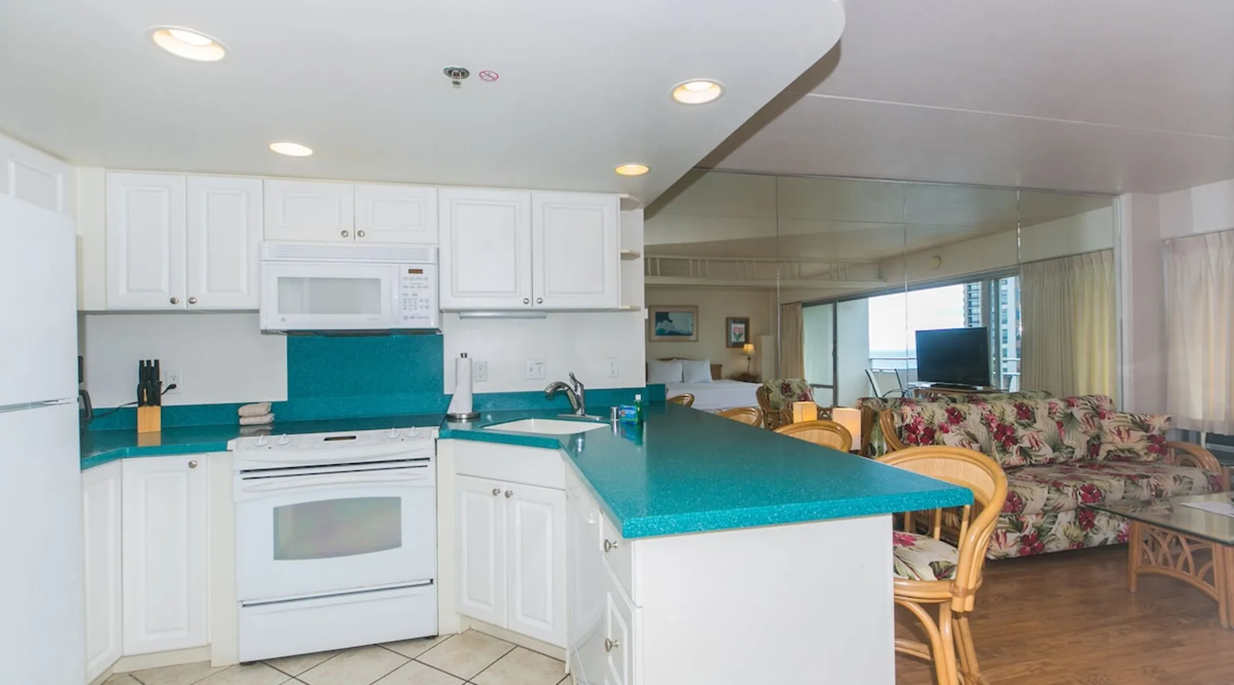 Beautiful views of the Duke Kahanamoku Lagoon and Pacific Ocean! As soon as you walk into the condo, you'll be welcomed by a clean and spacious living area. With 500 sq ft of living space and a huge lanai of 120 sq ft. Enjoy waking up to the calming views of the Pacific Ocean and to end the week, every Friday enjoy the beautiful fireworks off the lagoon from your private lanai. Registration details 260100070355, 1538, TA-097-693-4912-01