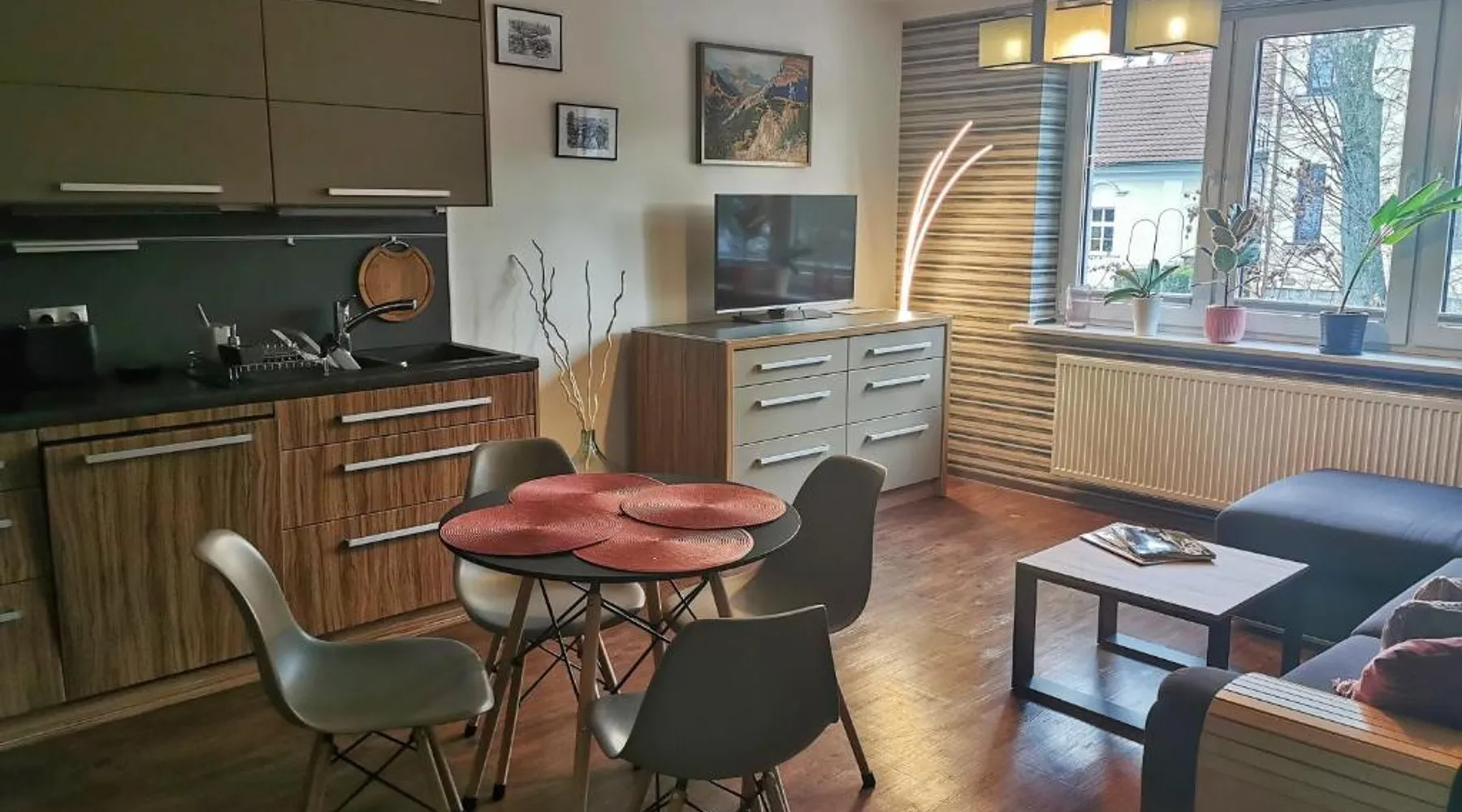 Comfortable Accommodations: Aament W SERCU USTRONIA in Ustroń offers a two-bedroom apartment with a balcony and garden views. The kitchenette includes a coffee machine, refrigerator, and dishwasher. Free WiFi is available throughout the property. Outdoor Amenities: Guests can enjoy an outdoor seating area, barbecue facilities, and a dining table. The balcony provides mountain views, while the garden offers a relaxing space. Convenient Facilities: The apartment features a work desk, TV, and free toiletries. Free on-site private parking is provided, along with a washing machine and wardrobe. Local Attractions: TwinPigs is located 26 mi away, while attractions such as Yes! and TwinPigs are nearby. Guests appreciate the room cleanliness, central location, and convenient location. The apartment has 2 bedrooms and 1 bathroom with a shower and free toiletries. Guests will find a stovetop, a refrigerator, a dishwasher and kitchenware in the kitchen. The apartment also includes a barbecue. This apartment features a coffee machine, flat-screen TV, garden views, as well as wine/champagne for guests. The unit has 3 beds.
