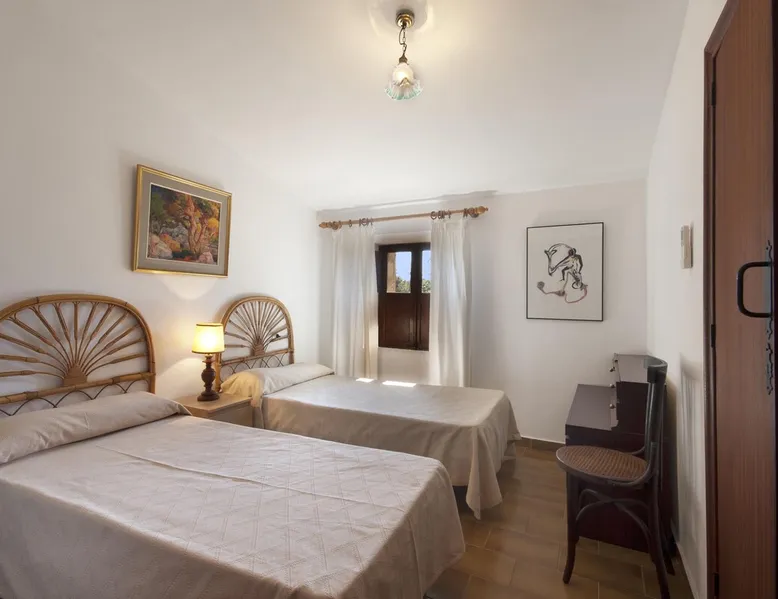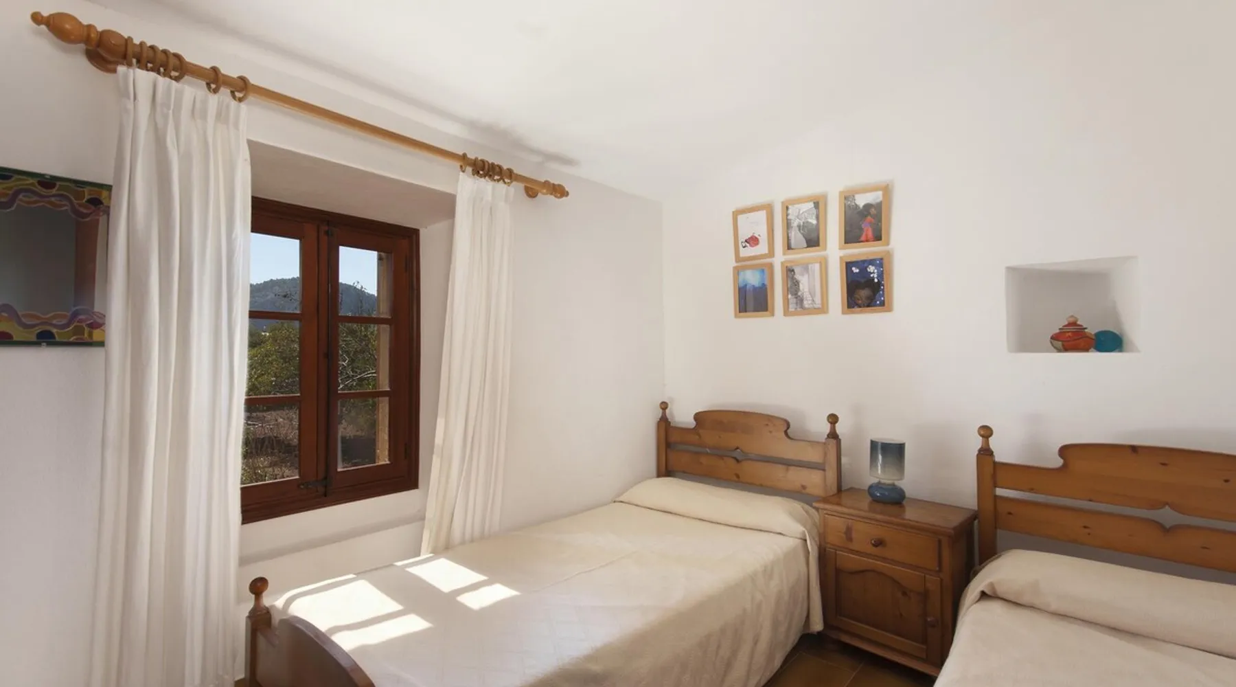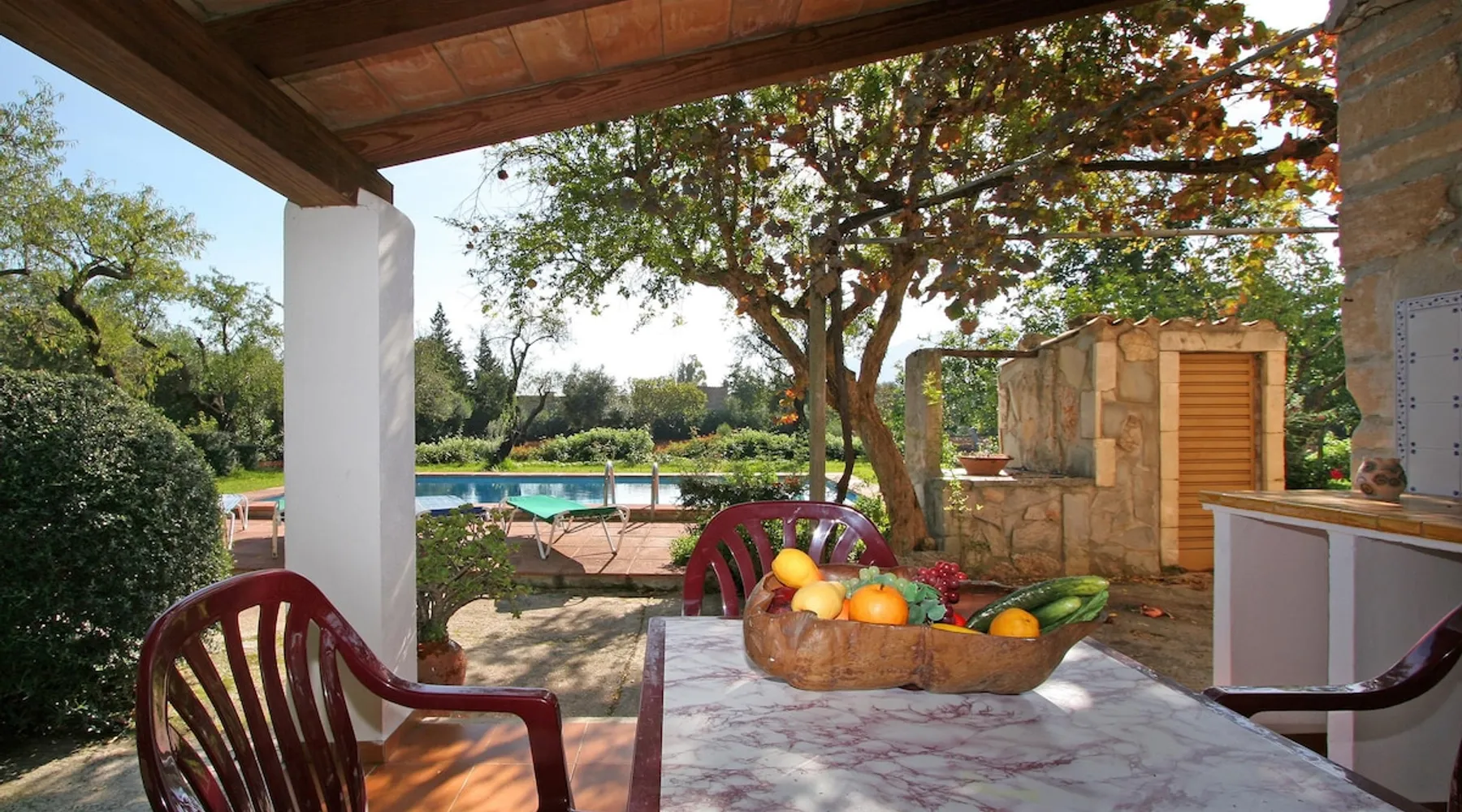 Lying in the tranquil and glorious countryside, just a short drive from the beautiful coastline, yet not far from Pollensa, this traditional Mallorcan farmhouse has a spectacular setting and combines the best of both worlds. With magnificent views in every direction, a lovely private pool and pretty gardens, you can relax and soak up the charm and character of Villa Punxa and its surroundings. The space Lying in the tranquil and glorious countryside, just a short drive from the beautiful coastline, yet not far from Pollensa, this traditional Mallorcan farmhouse has a spectacular setting and combines the best of both worlds. With magnificent views in every direction, a lovely private pool and pretty gardens, you can relax and soak up the charm and character of Villa Punxa and its surroundings. Swathes of colourful flowers line the pretty approach to the villa, and the track leads to ample parking to the fore of the property. The charm and character of Villa Punxa is immediately apparent, as the delightful rural setting and the stone-built villa greet you. Inside, the welcoming beamed and tiled kitchen features a walk-in panty and is fitted with a dishwasher, oven & hob, fridge-freezer. In the corner is a feature fireplace, whilst the table and chairs provide for a casual breakfast spot. The spacious living-dining room is tastefully furnished, with simple Mallorcan decor, ceramics and paintings, and a large dining table easily seating 6. Cosy sofas surround the fireplace and offer a comfortable place to kick back after a day exploring the surrounding area. Stairs lead up from the dining area to the first floor, where there are two twin bedrooms and one double. All three are simply and traditionally furnished and share a good sized full bathroom. To the front of the villa, and also accessed directly from the living room, is an impressive large terrace with colonnade and vine pergola. This is a beautiful spot to sit and enjoy the surroundings. There is a further covered terrace, which provides a shady spot when needed, housing a built-in Bbq and wood burning oven, as well as another shower room that can easily be used direct from the pool. The neatly kept lawn and the inviting pool sit amidst shady olive and lemon trees, and the gardens blend seamlessly into the surrounding countryside. A poolside lounger is the perfect place to enjoy the splendid setting of the mature trees and rugged mountainous backdrop to Villa Punxa. Despite this feeling of seclusion, the villa offers a Wi-Fi internet connection for guest’s use. Guest access The villa and pool is for your private use only as well as the garden. Bed linen & towels are provided as well as pool towels. The cleaner will come in during your stay & change them, depending on how many days you are staying. All of this is included in the price. Other things to note Included services - Swimming pool: Price: Included in the booking- tree-nation, 2x trees planted : Price: Included in the booking - Towels: Change each 4 days - Bed linen: Change each 7 days Optional services - Second Cot : Price: EUR 40.00 per booking. - Second High Chair: Price: EUR 40.00 per booking. - Baby high chair: Price: Included in the booking. - Cot/Crib: Price: Included in the booking. Registration Details Mallorca - Regional registration number ETV531