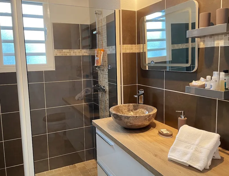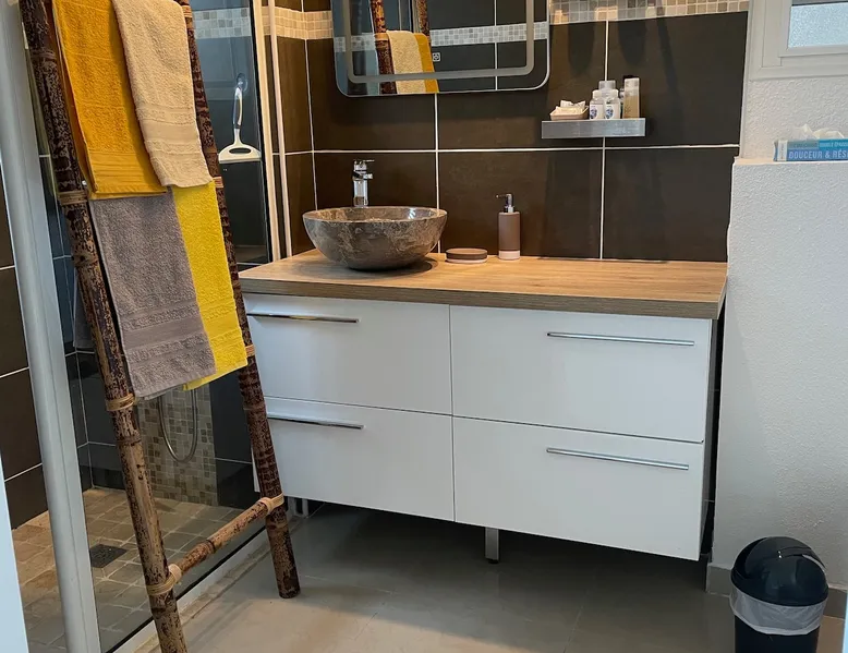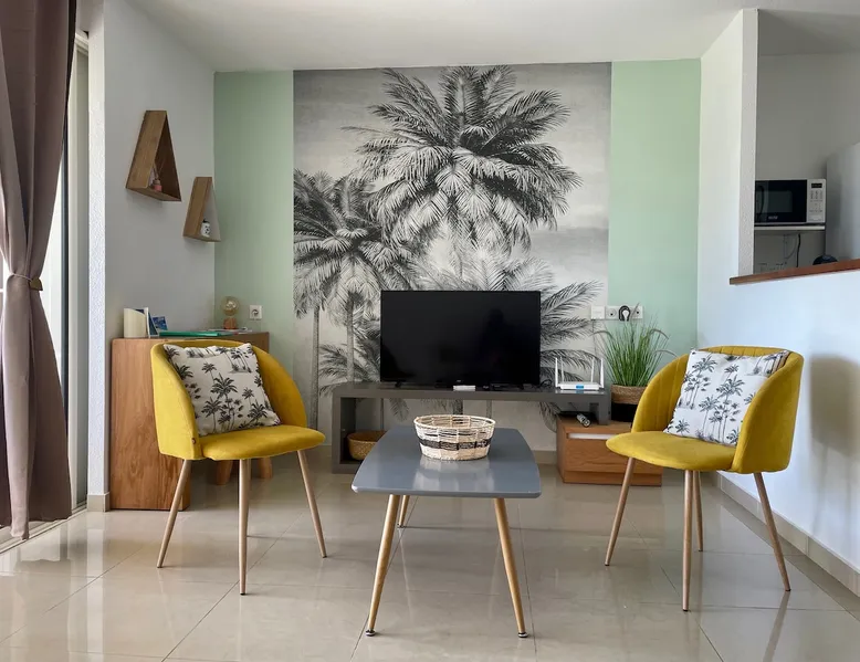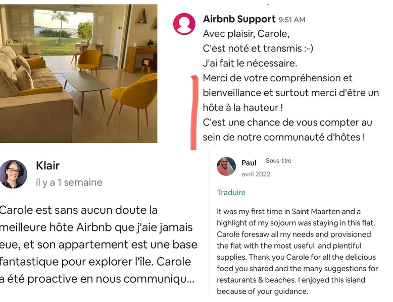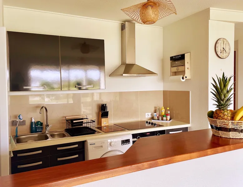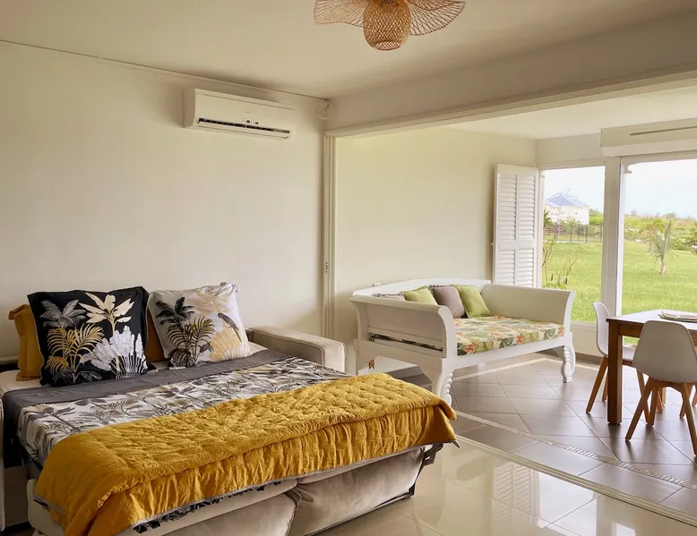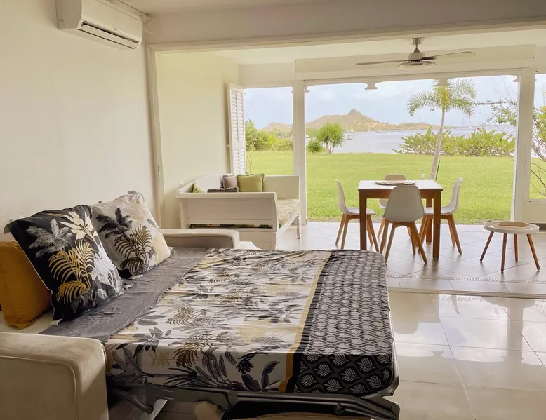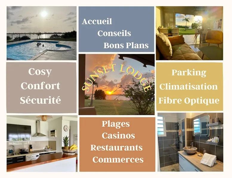 SUNSET LODGE = Very good hosting, advice, taxi recommendation, shops, restaurants and activities for outings in complete peace of mind Cozy lodge, very clean, located on the ground floor of a beautiful secure residence with pool. Dedicated parking space. Covered terrace, open to a beautiful garden, unforgettable sunset view. Close to Marigot, Maho, Simpson Bay, beaches, bars, restaurants and casinos. Located 2 minutes from the border, ideal for a bicultural experience. The space Choosing to stay at SUNSET LODGE means benefiting from: - Sofa on the terrace to admire beautiful sunsets over the lagoon. - Ceiling fan on the terrace. - Air-conditioned bedroom and living room. - Ultra-fast Wi-Fi (fiber optic) - Very well-equipped open-plan kitchen, everything to start your stay with peace of mind. - Television with many channels (Canal+, Netflix...) - Choice of bedding, extra pillows available. - Very comfortable sofa bed for 2 extra beds. - Designer bathroom, storage, beautiful sink, walk-in shower, towels and hygiene products on arrival, connected high-tech ceiling light. - Beach: chairs, cooler bag, parasol, towels, Foutas, fins and snorkel are available! - Small touches to discover upon arrival. - Advice, tips and availability to assist you. Guest access Within a 5-minute walk of the residence in the Bellevue neighborhood, you have many shops, restaurants, activity centers, but also health professionals and a pharmacy. While walking, you can go to Marigot and discover its marina and unmissable gourmet restaurants. But also its beachfront, rich in color and flavor. You can enjoy a French breakfast or a good wine, as you wish. The picturesque market and small local restaurants are worth a visit. If you rent a car, the apartment located 2 km from the border will allow you to go from the French side to the Dutch side in a few minutes. To fully experience the charm of Saint-Martin/Sint-Maarten, two cultures, united on such a small island. Having lived in Saint-Martin for almost 20 years, it is with great pleasure that I will advise you on how to spend unforgettable moments during your stay.