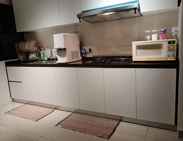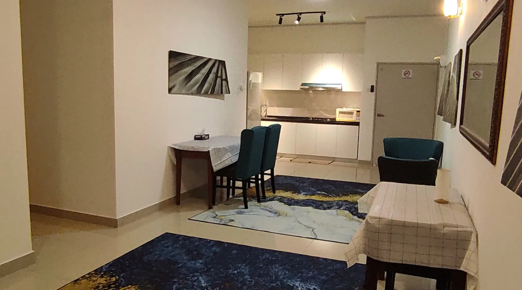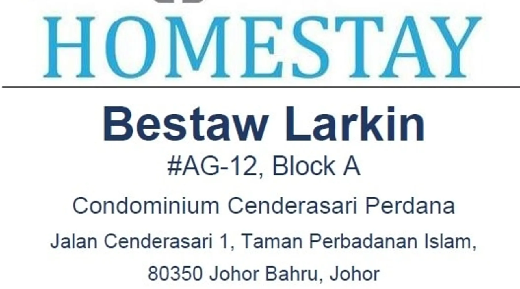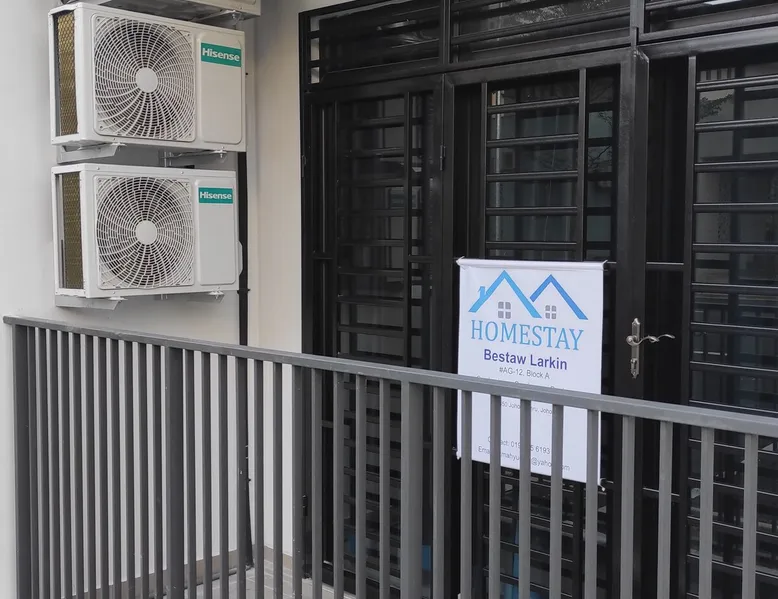 3bedrooms c/w 3 sets Air Cond, 1 nos of parking lot, Free wifi, fridge, cuckoo water, cooking and washing facility. Located 1.5km (3minutes) from Larkin Sentral and 7.9km (11minutes) from CIQ JB. Suitable for business or family visit trips. We accept short/long term rental The space House location is on ground floor and first unit at block A We provides Living room with Air Cond, master bedroom with Air Cond and android TV, 2nd bedrooms with Air Cond for your comfort and 1 bedroom with fresh air blower. We provides living room with sofa bed and WiFi connection for entertainment & communication, kitchen with fridge, micro wave, gas stove and cooking utensils. In yard we provide washing machine Guest access Muslims Musolla is available at 5 minutes walking distance. Kid playground is available for visitor as well Other things to note I am maintaining a Halal Kitchen for Muslim in my Homestay.