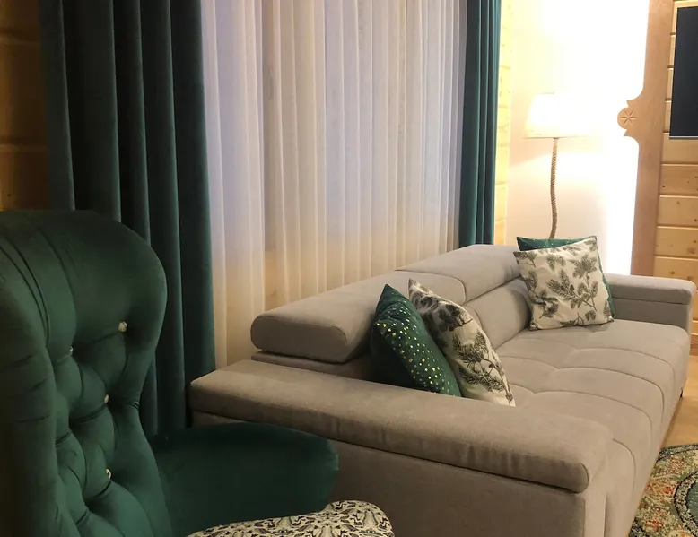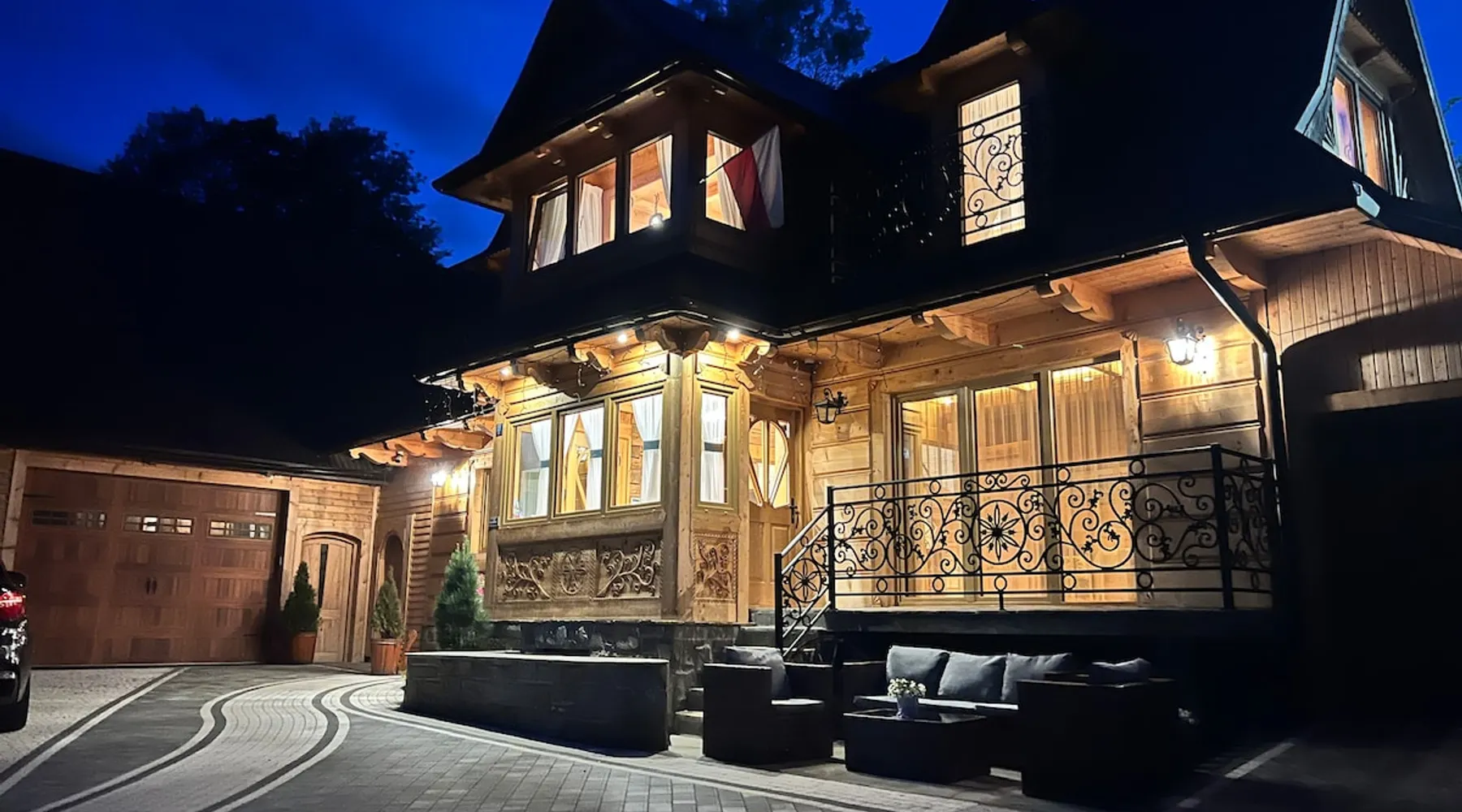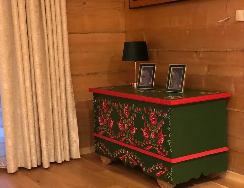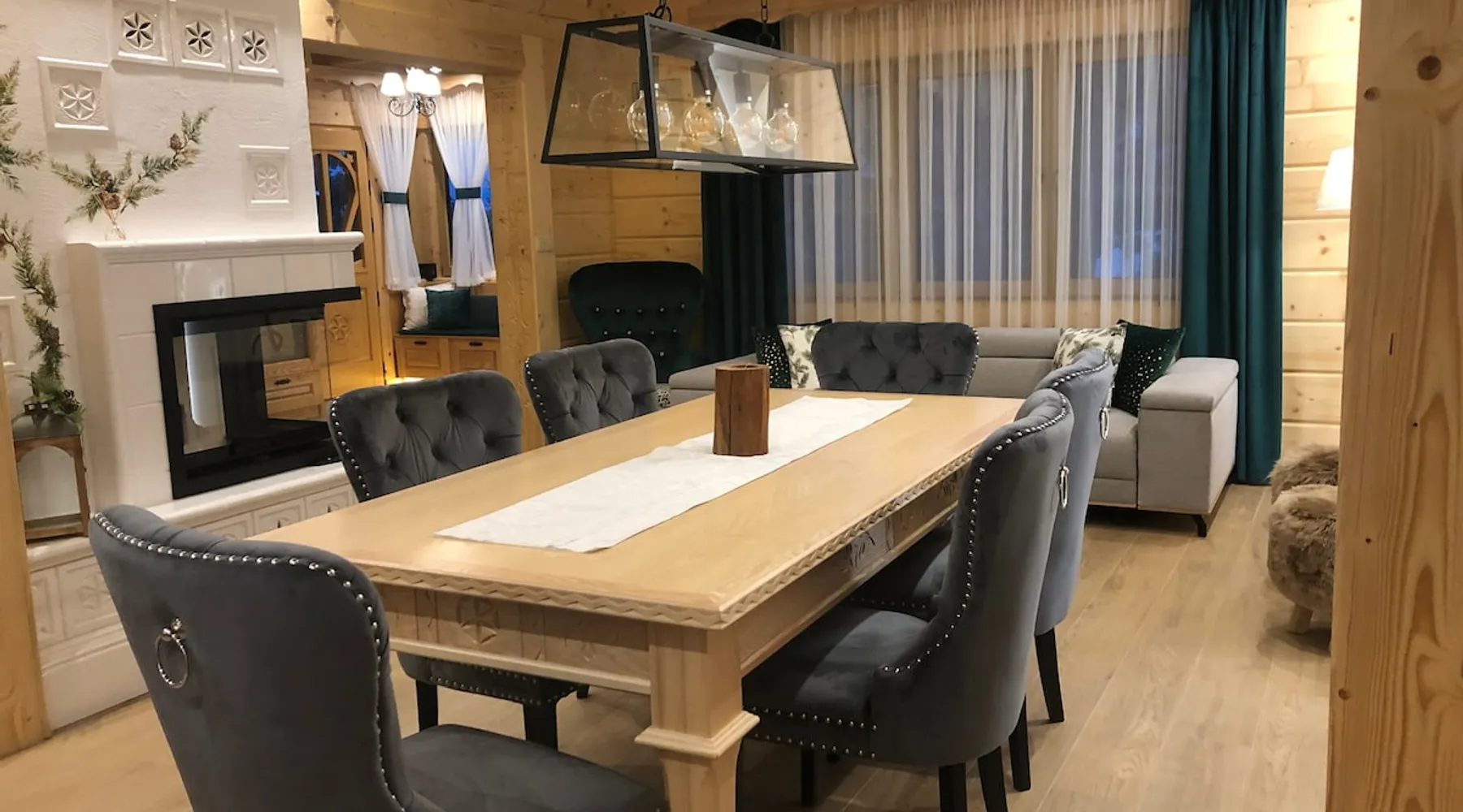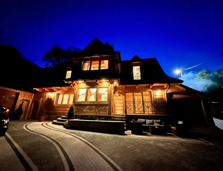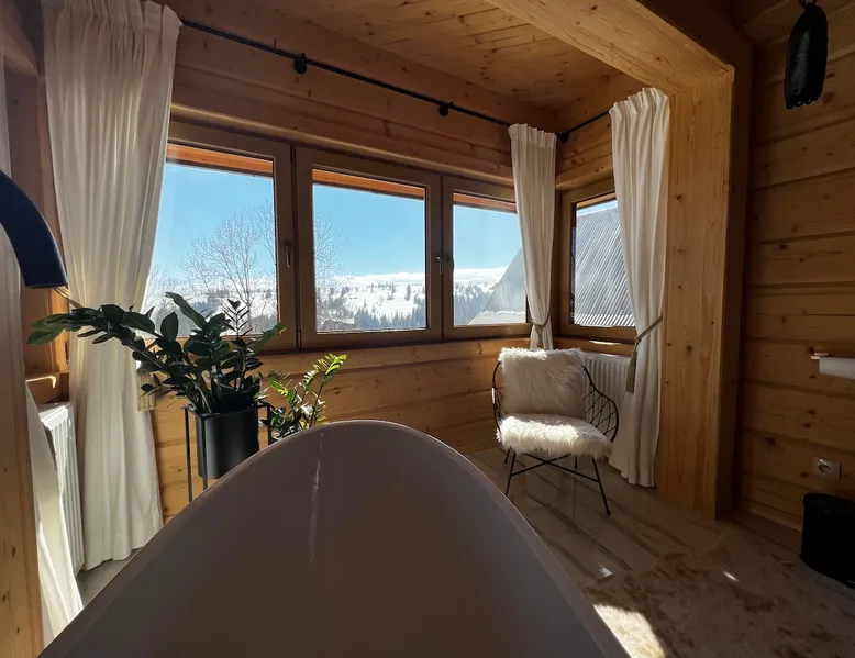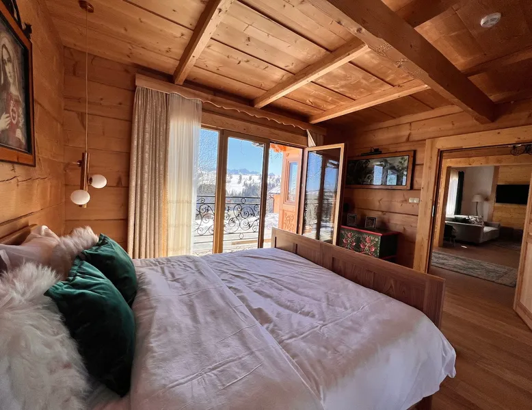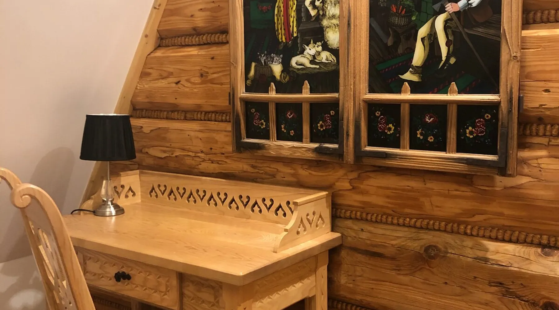 Rancho Zalinski is a wooden highlander house located just 10 km from the famous Zakopane - the winter capital of the Tatras. Rancho Zaliński is located in a quiet and intimate corner of Podhale. It is a 20th-century highlander house built of amphibians, with preserved decorative motifs from the previous century, richly decorated with carved and forged elements. The house has a tiled fireplace and a wood-fired tub. If you like the idyllic atmosphere surrounded by nature, you will definitely like the Ranch. The space Rancho Zaliński is located in Bustryk in Podhale. It is a region of Skalny Podhale characterized by a unique and very interesting culture, art, and above all folklore, which is a treasure, a showcase and a tourist attraction. All this makes a holiday at the foot of the Tatras in this beautiful corner of Podhale with a view of the mountains, near hiking and cycling trails, thermal water pools, and surrounded by mountain nature, ideal both in winter and summer. Rancho Zalinski is a stylish house of a highlander family from the beginning of the 20th century, built of wood, with a fireplace with white tiles, an outdoor wood-fired tub (extra charge), and a view of the Tatra Mountains. The house has 3 beautifully decorated bedrooms, each in a unique style, and 2 luxurious bathrooms, 1 of which has a free-standing bathtub. The kitchen is equipped with a dishwasher, oven, microwave, fridge-freezer with ice maker. The dining room has a large folding table. Guest access Parking is available on the fenced property of Rancho Zaliński. In winter, in the event of heavy snowfall, it may not be possible to drive to the house. In this situation, we provide free parking on the main road (about 150 m from the house). Other things to note Package is charged extra according to the price list. Please review the rules. The use of the tub is tantamount to accepting the rules. Please let us know at least 6 hours in advance if you wish to use the hot tub. Please let us know your approximate check-in time when you book, and contact the property one hour before you arrive to exchange keys.