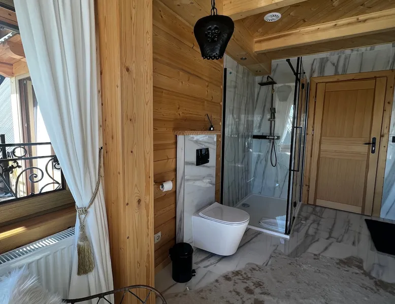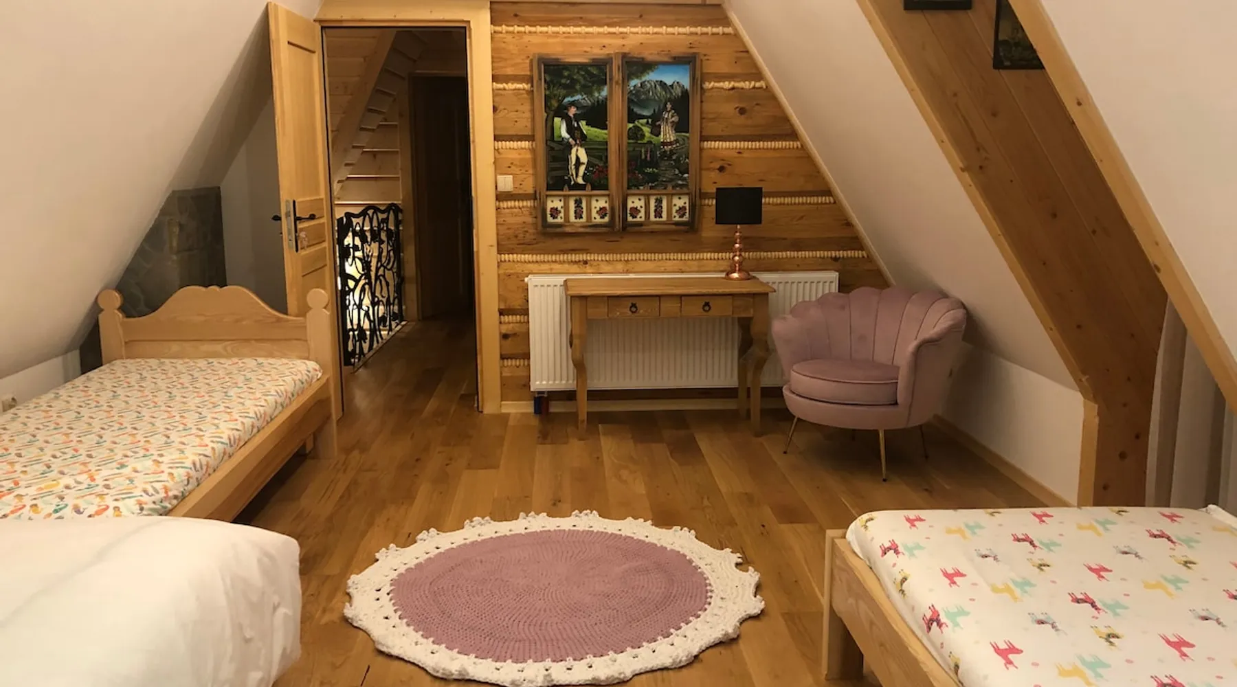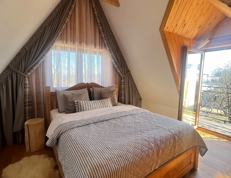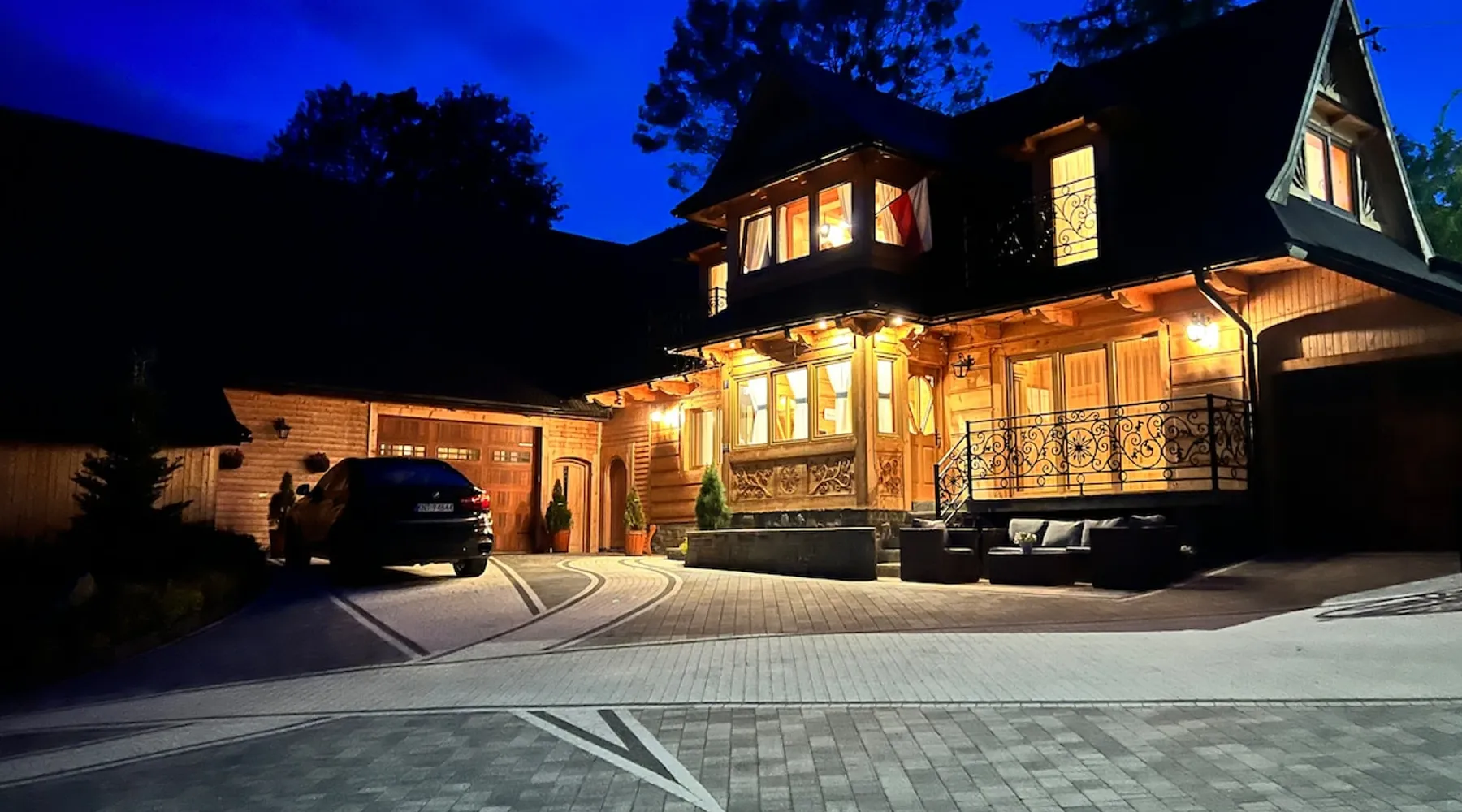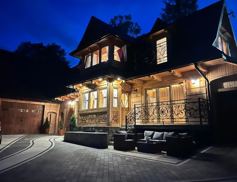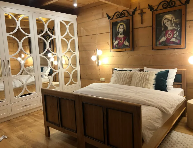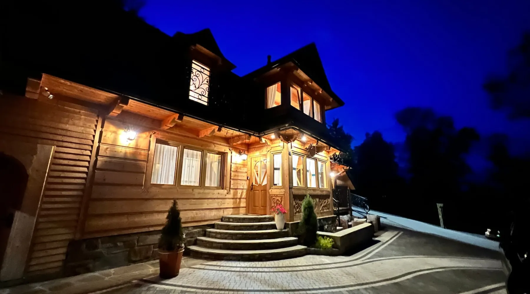 Rancho Zalinski is a wooden highlander house located just 10 km from the famous Zakopane - the winter capital of the Tatras. Rancho Zaliński is located in a quiet and intimate corner of Podhale. It is a 20th-century highlander house built of amphibians, with preserved decorative motifs from the previous century, richly decorated with carved and forged elements. The house has a tiled fireplace and a wood-fired tub. If you like the idyllic atmosphere surrounded by nature, you will definitely like the Ranch. The space Rancho Zaliński is located in Bustryk in Podhale. It is a region of Skalny Podhale characterized by a unique and very interesting culture, art, and above all folklore, which is a treasure, a showcase and a tourist attraction. All this makes a holiday at the foot of the Tatras in this beautiful corner of Podhale with a view of the mountains, near hiking and cycling trails, thermal water pools, and surrounded by mountain nature, ideal both in winter and summer. Rancho Zalinski is a stylish house of a highlander family from the beginning of the 20th century, built of wood, with a fireplace with white tiles, an outdoor wood-fired tub (extra charge), and a view of the Tatra Mountains. The house has 3 beautifully decorated bedrooms, each in a unique style, and 2 luxurious bathrooms, 1 of which has a free-standing bathtub. The kitchen is equipped with a dishwasher, oven, microwave, fridge-freezer with ice maker. The dining room has a large folding table. Guest access Parking is available on the fenced property of Rancho Zaliński. In winter, in the event of heavy snowfall, it may not be possible to drive to the house. In this situation, we provide free parking on the main road (about 150 m from the house). Other things to note Package is charged extra according to the price list. Please review the rules. The use of the tub is tantamount to accepting the rules. Please let us know at least 6 hours in advance if you wish to use the hot tub. Please let us know your approximate check-in time when you book, and contact the property one hour before you arrive to exchange keys.