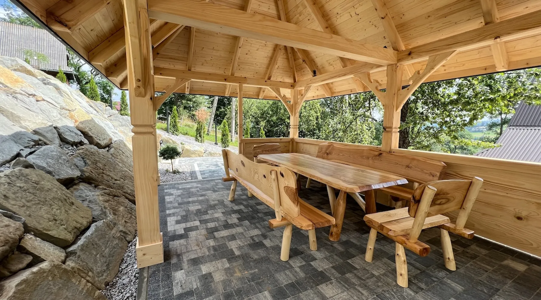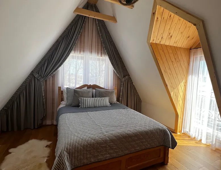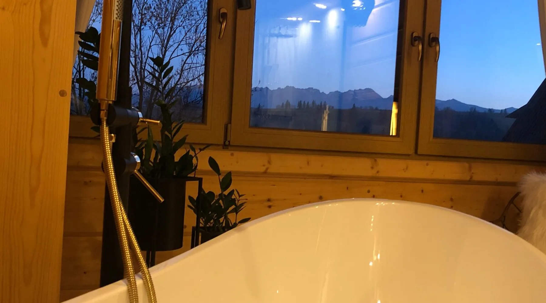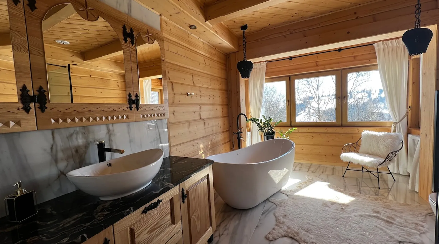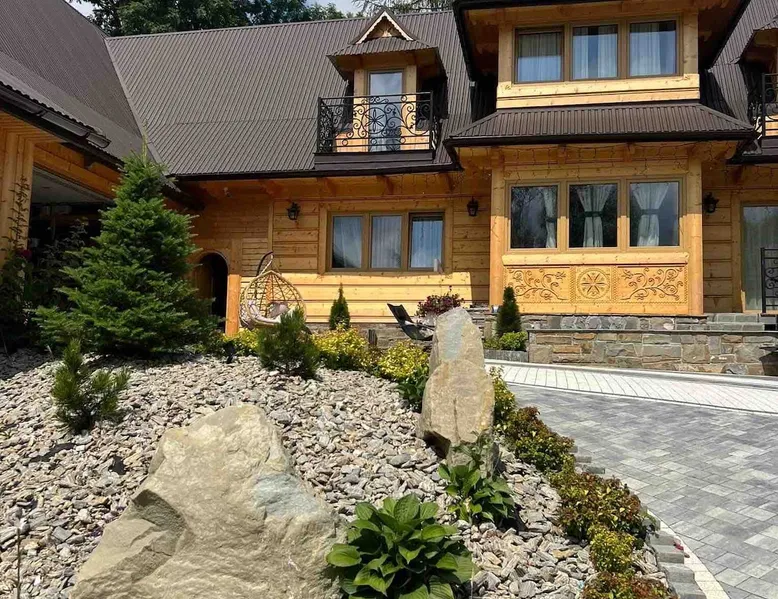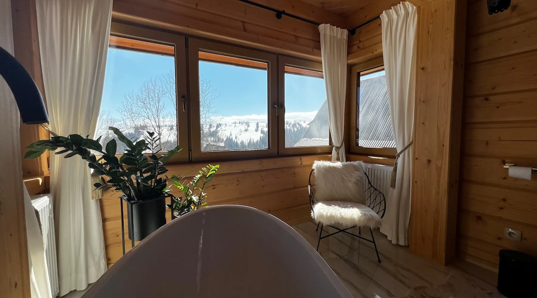 Rancho Zalinski is a wooden highlander house located just 10 km from the famous Zakopane - the winter capital of the Tatras. Rancho Zaliński is located in a quiet and intimate corner of Podhale. It is a 20th-century highlander house built of amphibians, with preserved decorative motifs from the previous century, richly decorated with carved and forged elements. The house has a tiled fireplace and a wood-fired tub. If you like the idyllic atmosphere surrounded by nature, you will definitely like the Ranch. The space Rancho Zaliński is located in Bustryk in Podhale. It is a region of Skalny Podhale characterized by a unique and very interesting culture, art, and above all folklore, which is a treasure, a showcase and a tourist attraction. All this makes a holiday at the foot of the Tatras in this beautiful corner of Podhale with a view of the mountains, near hiking and cycling trails, thermal water pools, and surrounded by mountain nature, ideal both in winter and summer. Rancho Zalinski is a stylish house of a highlander family from the beginning of the 20th century, built of wood, with a fireplace with white tiles, an outdoor wood-fired tub (extra charge), and a view of the Tatra Mountains. The house has 3 beautifully decorated bedrooms, each in a unique style, and 2 luxurious bathrooms, 1 of which has a free-standing bathtub. The kitchen is equipped with a dishwasher, oven, microwave, fridge-freezer with ice maker. The dining room has a large folding table. Guest access Parking is available on the fenced property of Rancho Zaliński. In winter, in the event of heavy snowfall, it may not be possible to drive to the house. In this situation, we provide free parking on the main road (about 150 m from the house). Other things to note Package is charged extra according to the price list. Please review the rules. The use of the tub is tantamount to accepting the rules. Please let us know at least 6 hours in advance if you wish to use the hot tub. Please let us know your approximate check-in time when you book, and contact the property one hour before you arrive to exchange keys.