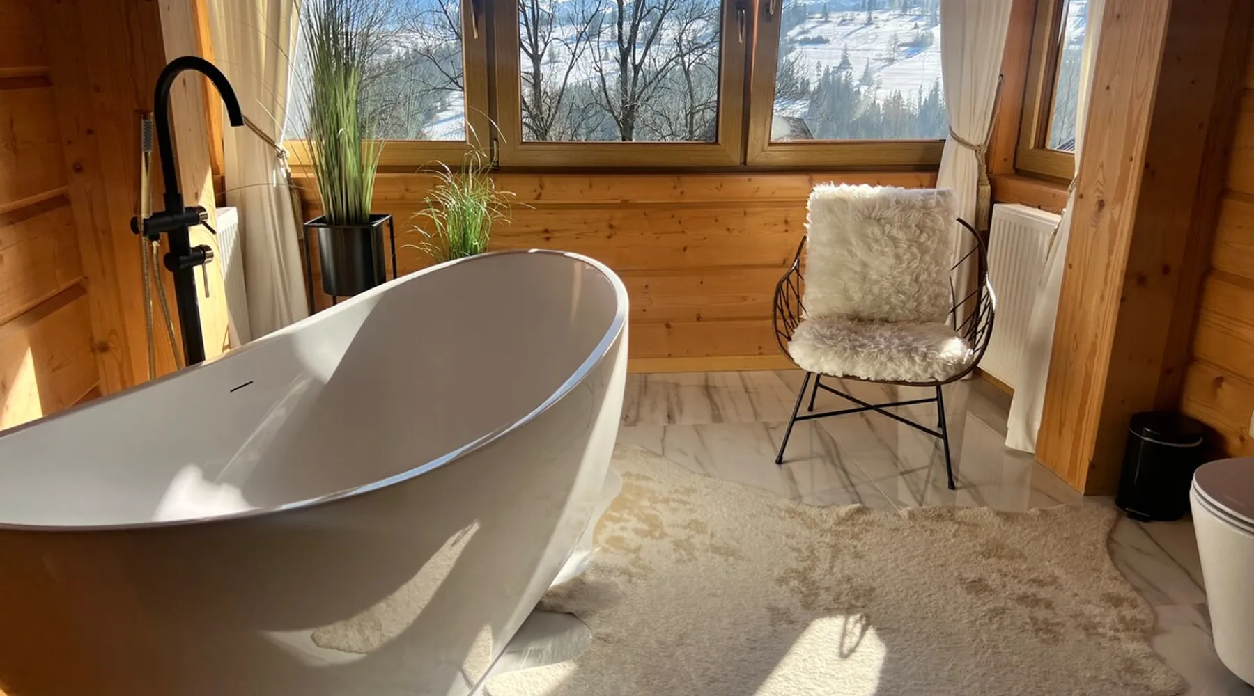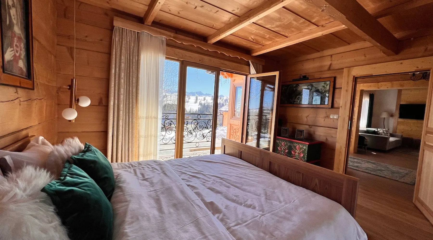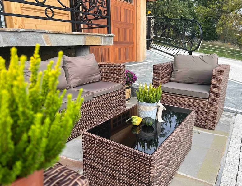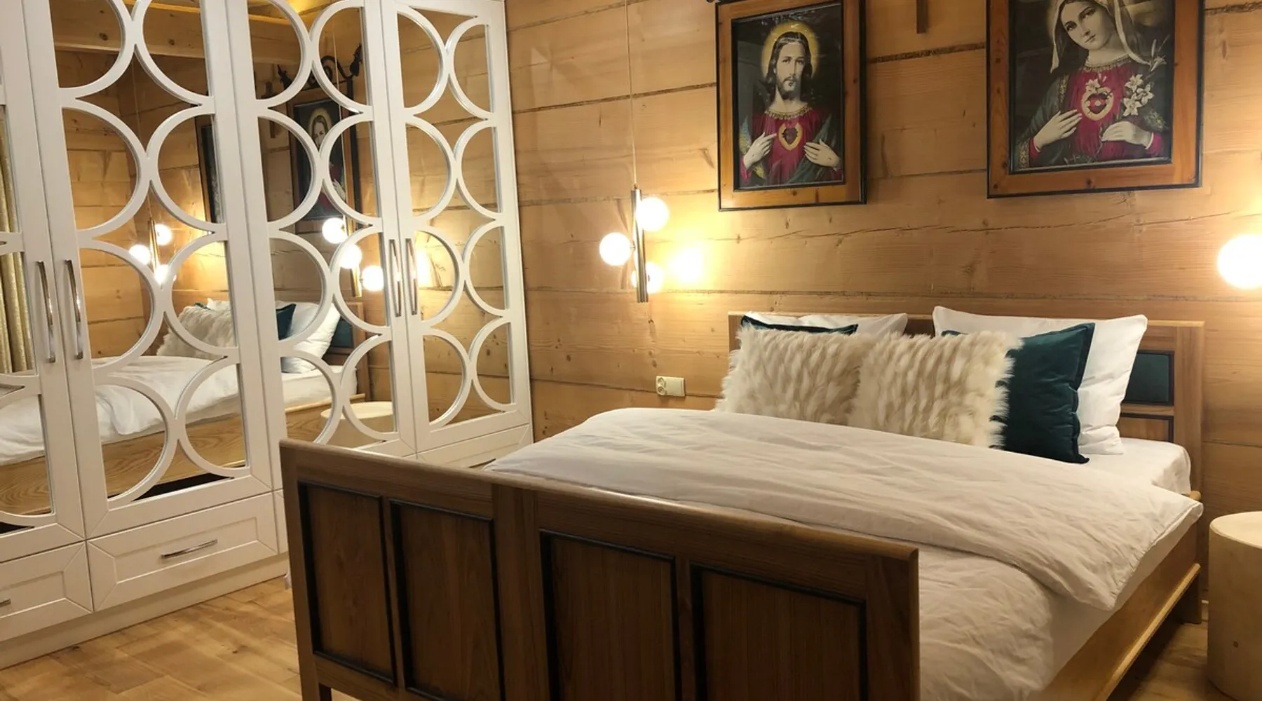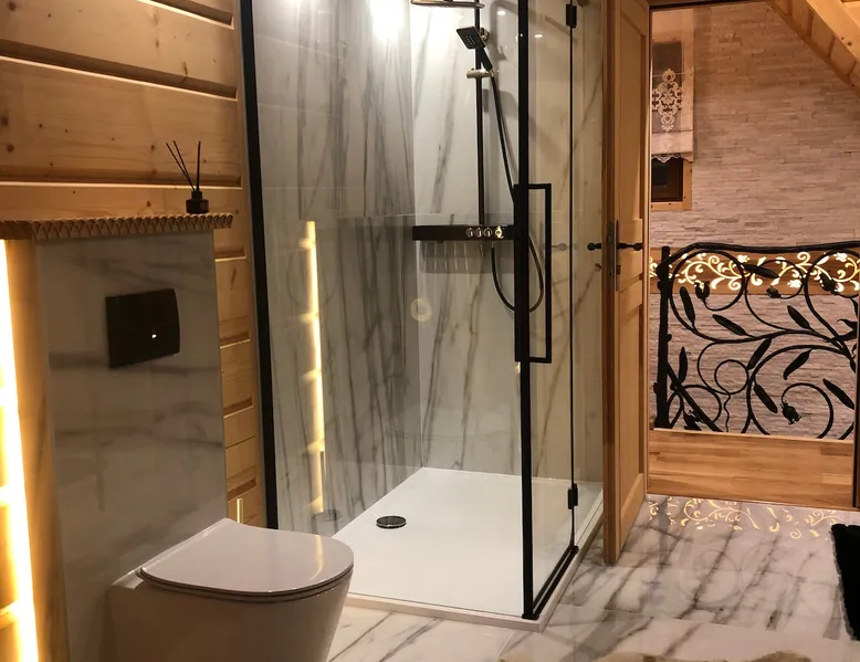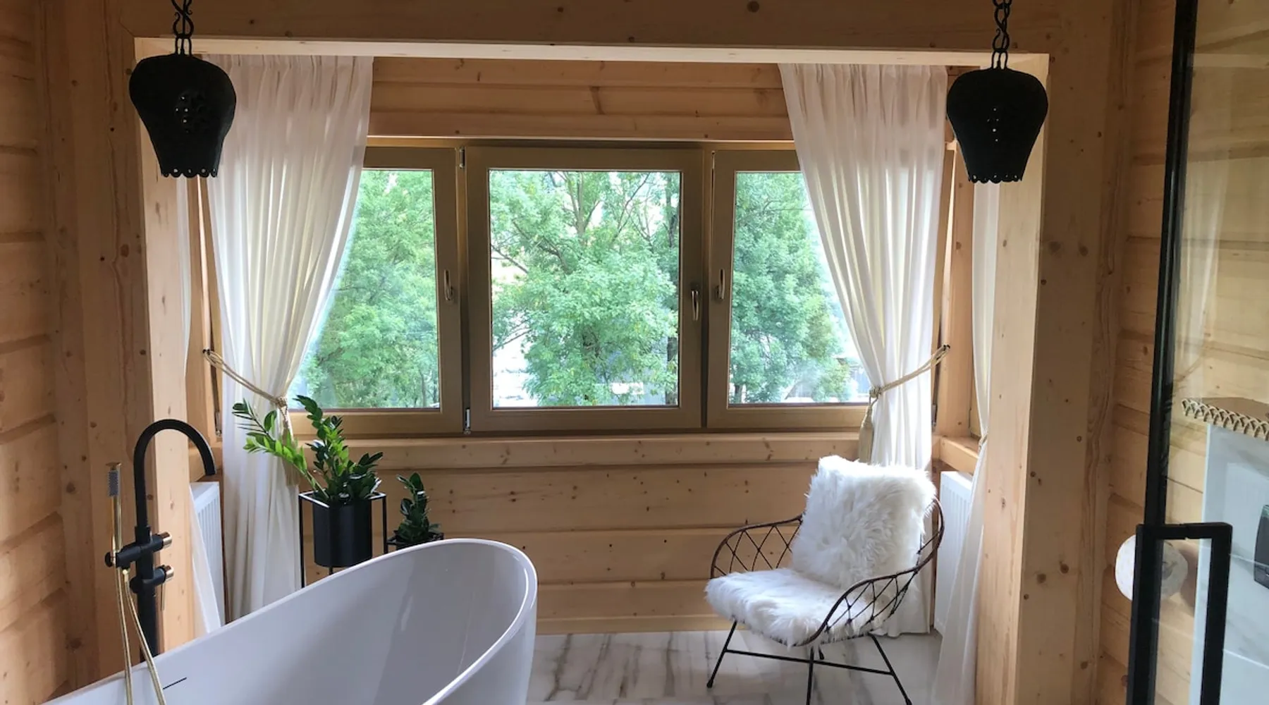 Rancho Zalinski is a wooden highlander house located just 10 km from the famous Zakopane - the winter capital of the Tatras. Rancho Zaliński is located in a quiet and intimate corner of Podhale. It is a 20th-century highlander house built of amphibians, with preserved decorative motifs from the previous century, richly decorated with carved and forged elements. The house has a tiled fireplace and a wood-fired tub. If you like the idyllic atmosphere surrounded by nature, you will definitely like the Ranch. The space Rancho Zaliński is located in Bustryk in Podhale. It is a region of Skalny Podhale characterized by a unique and very interesting culture, art, and above all folklore, which is a treasure, a showcase and a tourist attraction. All this makes a holiday at the foot of the Tatras in this beautiful corner of Podhale with a view of the mountains, near hiking and cycling trails, thermal water pools, and surrounded by mountain nature, ideal both in winter and summer. Rancho Zalinski is a stylish house of a highlander family from the beginning of the 20th century, built of wood, with a fireplace with white tiles, an outdoor wood-fired tub (extra charge), and a view of the Tatra Mountains. The house has 3 beautifully decorated bedrooms, each in a unique style, and 2 luxurious bathrooms, 1 of which has a free-standing bathtub. The kitchen is equipped with a dishwasher, oven, microwave, fridge-freezer with ice maker. The dining room has a large folding table. Guest access Parking is available on the fenced property of Rancho Zaliński. In winter, in the event of heavy snowfall, it may not be possible to drive to the house. In this situation, we provide free parking on the main road (about 150 m from the house). Other things to note Package is charged extra according to the price list. Please review the rules. The use of the tub is tantamount to accepting the rules. Please let us know at least 6 hours in advance if you wish to use the hot tub. Please let us know your approximate check-in time when you book, and contact the property one hour before you arrive to exchange keys.