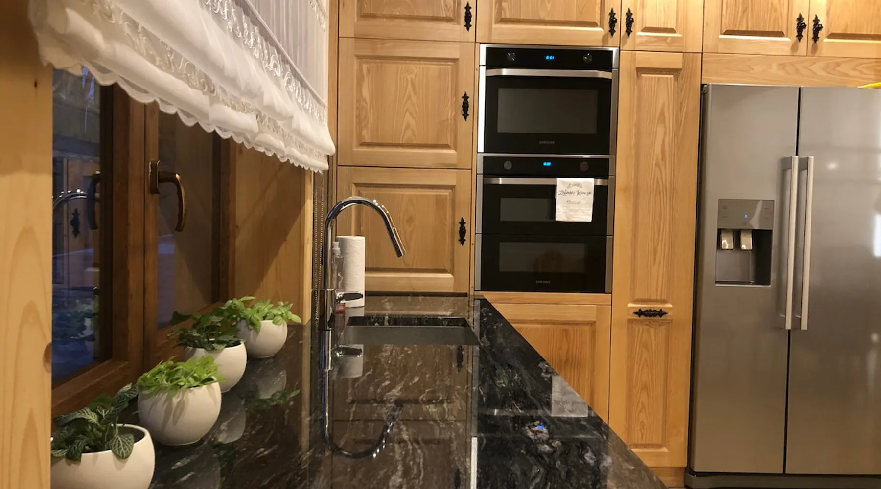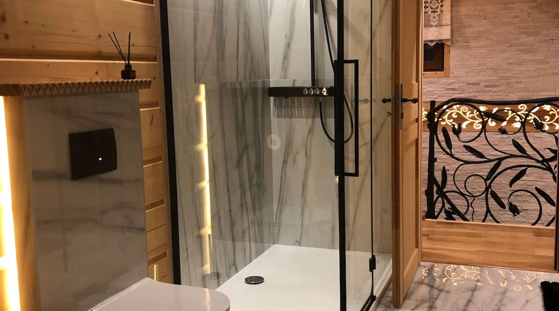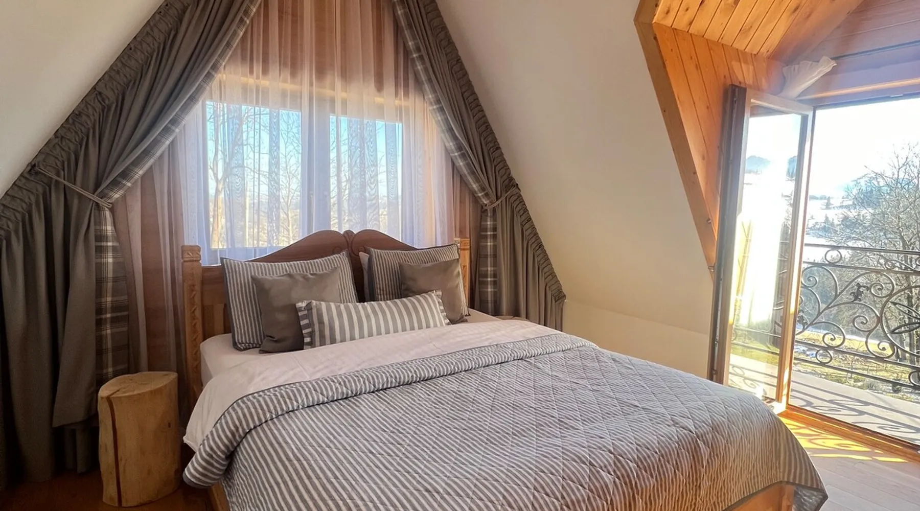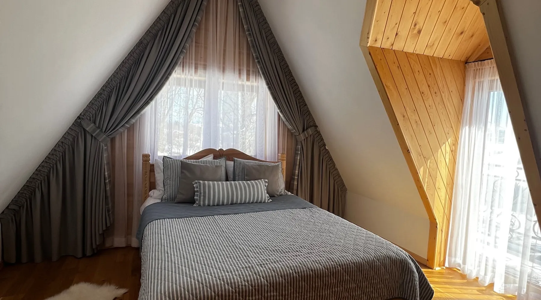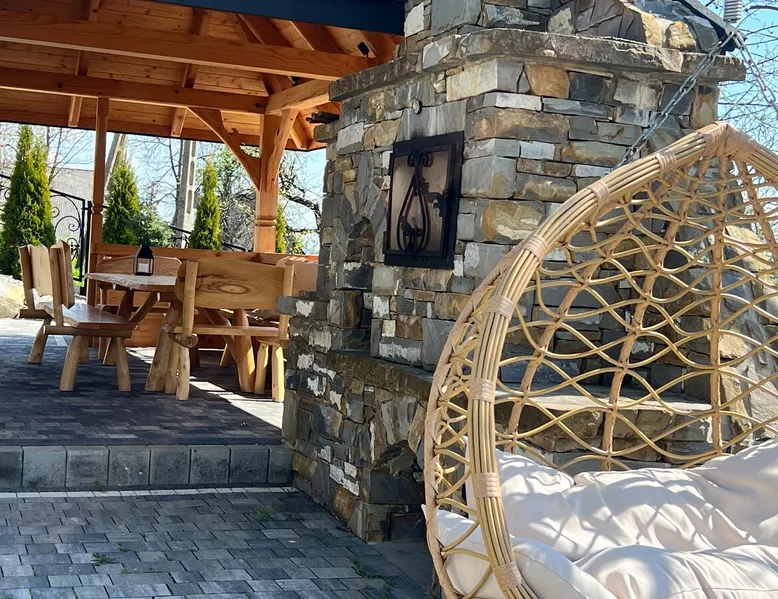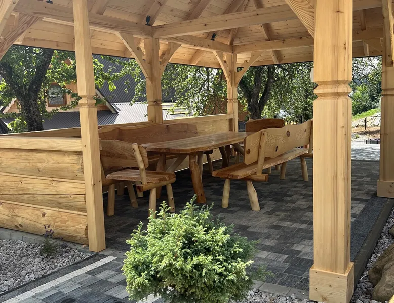 Rancho Zalinski is a wooden highlander house located just 10 km from the famous Zakopane - the winter capital of the Tatras. Rancho Zaliński is located in a quiet and intimate corner of Podhale. It is a 20th-century highlander house built of amphibians, with preserved decorative motifs from the previous century, richly decorated with carved and forged elements. The house has a tiled fireplace and a wood-fired tub. If you like the idyllic atmosphere surrounded by nature, you will definitely like the Ranch. The space Rancho Zaliński is located in Bustryk in Podhale. It is a region of Skalny Podhale characterized by a unique and very interesting culture, art, and above all folklore, which is a treasure, a showcase and a tourist attraction. All this makes a holiday at the foot of the Tatras in this beautiful corner of Podhale with a view of the mountains, near hiking and cycling trails, thermal water pools, and surrounded by mountain nature, ideal both in winter and summer. Rancho Zalinski is a stylish house of a highlander family from the beginning of the 20th century, built of wood, with a fireplace with white tiles, an outdoor wood-fired tub (extra charge), and a view of the Tatra Mountains. The house has 3 beautifully decorated bedrooms, each in a unique style, and 2 luxurious bathrooms, 1 of which has a free-standing bathtub. The kitchen is equipped with a dishwasher, oven, microwave, fridge-freezer with ice maker. The dining room has a large folding table. Guest access Parking is available on the fenced property of Rancho Zaliński. In winter, in the event of heavy snowfall, it may not be possible to drive to the house. In this situation, we provide free parking on the main road (about 150 m from the house). Other things to note Package is charged extra according to the price list. Please review the rules. The use of the tub is tantamount to accepting the rules. Please let us know at least 6 hours in advance if you wish to use the hot tub. Please let us know your approximate check-in time when you book, and contact the property one hour before you arrive to exchange keys.