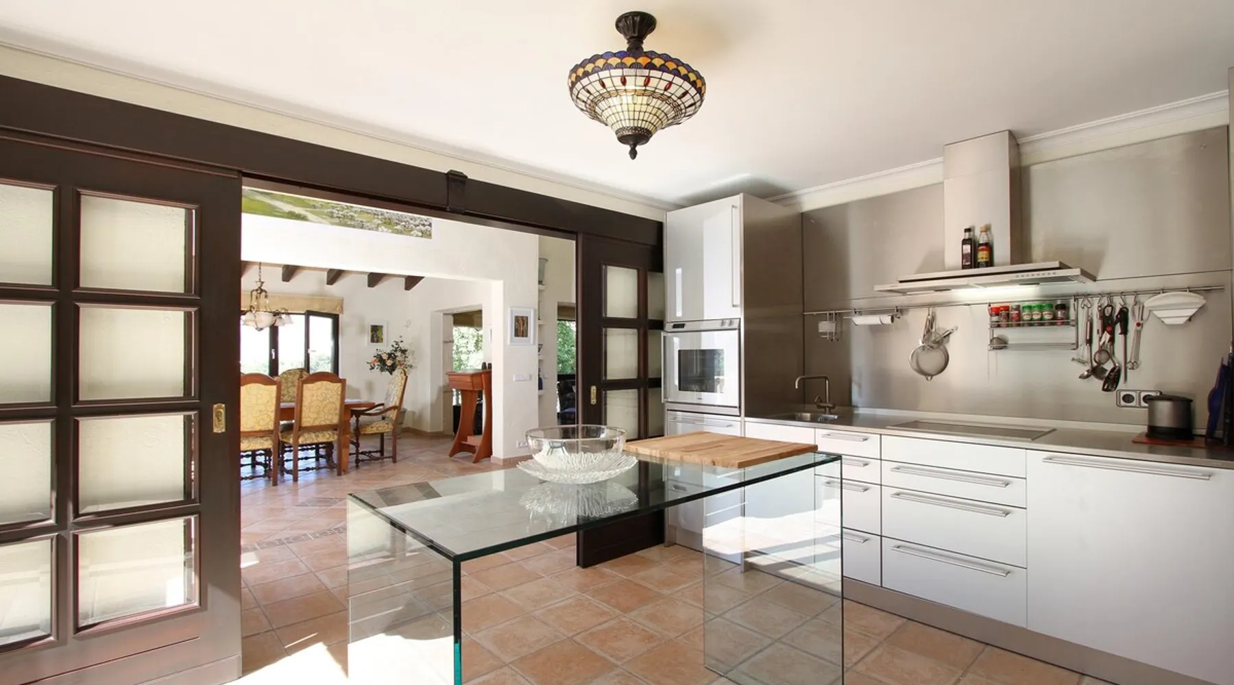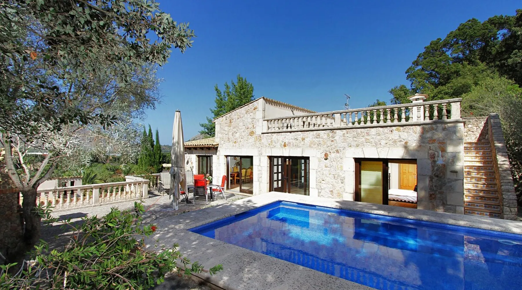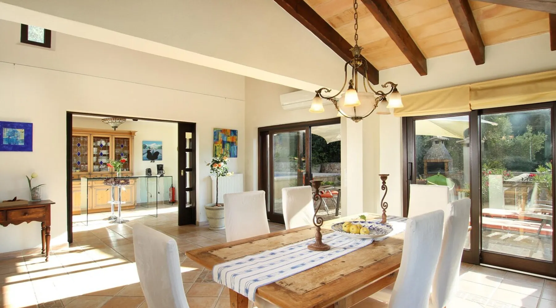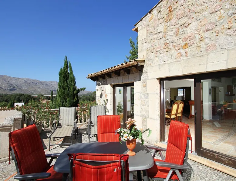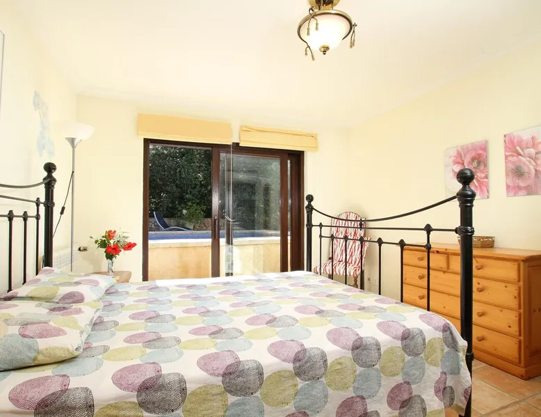 The stunning location of this beautifully built and decorated villa is just one of the many reasons you might choose Villa Llop for your next villa holiday. Nestled on a wooded hillside, magnificent views can be had from the mature well-tended gardens, taking in the open Pollensa countryside backed by the spectacular mountains. However secluded and private this lovely villa feels, the benefit of Villa Llop is that the vibrant shops, restaurants, and galleries of Pollenca Old Town are so close. The space The stunning location of this beautifully built and decorated villa is just one of the many reasons you might choose Villa Llop for your next villa holiday. Nestled on a wooded hillside, magnificent views can be had from the mature well-tended gardens, taking in the open Pollensa countryside backed by the spectacular mountains. However secluded and private this lovely villa feels, the benefit of Villa Llop is that the vibrant shops, restaurants, and galleries of Pollenca Old Town are a very short drive away, or you could perhaps take a pleasant bike ride for a change of pace. Fruit trees line the sweeping drive which leads to the ample parking. The property itself is set over two further levels, whilst steps from the parking area lead to the annex and a garden. The combination of the house and annex offers well laid out accommodation, and this flexibility and space makes Villa Llop ideal for friends or families holidaying together. The annex provides two areas of accommodation, joined by an interconnecting door which can be opened between the two halves, or locked for privacy if preferred. The first section houses a restful twin bedroom with en suite walk-in shower room. From here, two steps take you to the well furnished living area consisting of lounge, dining and kitchen areas. Here you will find an oven & hob and a fridge-freezer. The second portion of the annex has a double bedroom with a separate shower room. Alongside this, there is a comfortably furnished living-dining space. Further steps lead from this level up to the main house of Villa Llop. You will enter into a welcoming and spacious living-dining area with it’s splendid views of the surrounding countryside in all directions. Simply and tastefully furnished, this provides a lovely area for your party to dine and relax, and has direct access to the furnished terrace. A sliding door can separate off the large, modern and well-equipped kitchen, which has a breakfast bar and large doors opening to the terrace and poolside area. You will find yourselves well-catered for with a built-in oven & hob, microwave, fridge-freezer, dishwasher and washing machine to make light of any holiday chores. If you prefer an al fresco supper, there is also a built in Bbq on the terrace. Both of the bedrooms - one double and one twin - are generously sized, and the large bathroom has a sunken bath and separate walk-in shower. The cobbled terrace outside the living rooms adjoins the raised-level swimming pool, which has ladder entry steps. The views through the olive trees take in the beautiful rural setting of Villa Llop. Another star feature is the lovely sauna that can be found close to the pool, and there is even a table tennis table for some friendly holiday matches! Guest access The villa and pool is for your private use only as well as the garden. Bed linen & towels are provided as well as pool towels. The cleaner will come in during your stay & change them, depending on how many days you are staying. All of this is included in the price. Other things to note Included services - Swimming pool: Services available according to season Opening date: 01/04. Closing date: 01/11. Price: Included in the booking- tree-nation, 2x trees planted : Price: Included in the booking - Bed linen: Change each 7 days - Towels: Change each 5 days Optional services - Baby high chair: Price: Included in the booking. - Cot/Crib: Price: Included in the booking. - Second High Chair: Price: EUR 40.00 per booking. - Second Cot : Price: EUR 40.00 per booking. Registration Details Mallorca - Regional registration number ETV/11528